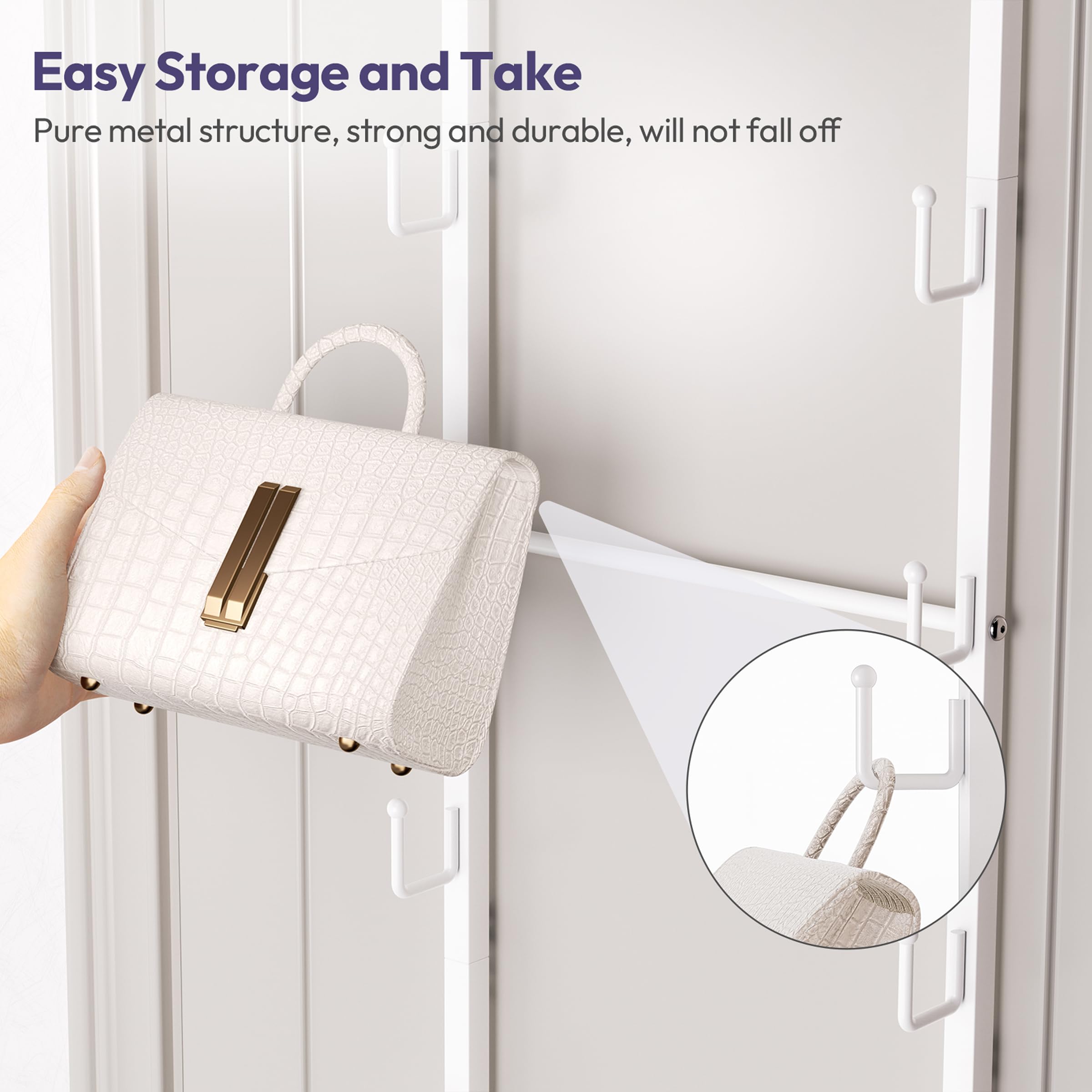 [Everyday Bag Access, Simplified]: Keep your go-to bags right where you need them. This sleek purse storage for closet offers top-down visibility and quick grab-and-go access. Each hook is spaced perfectly to prevent overlaps, making it a brilliant hanging purse organizer