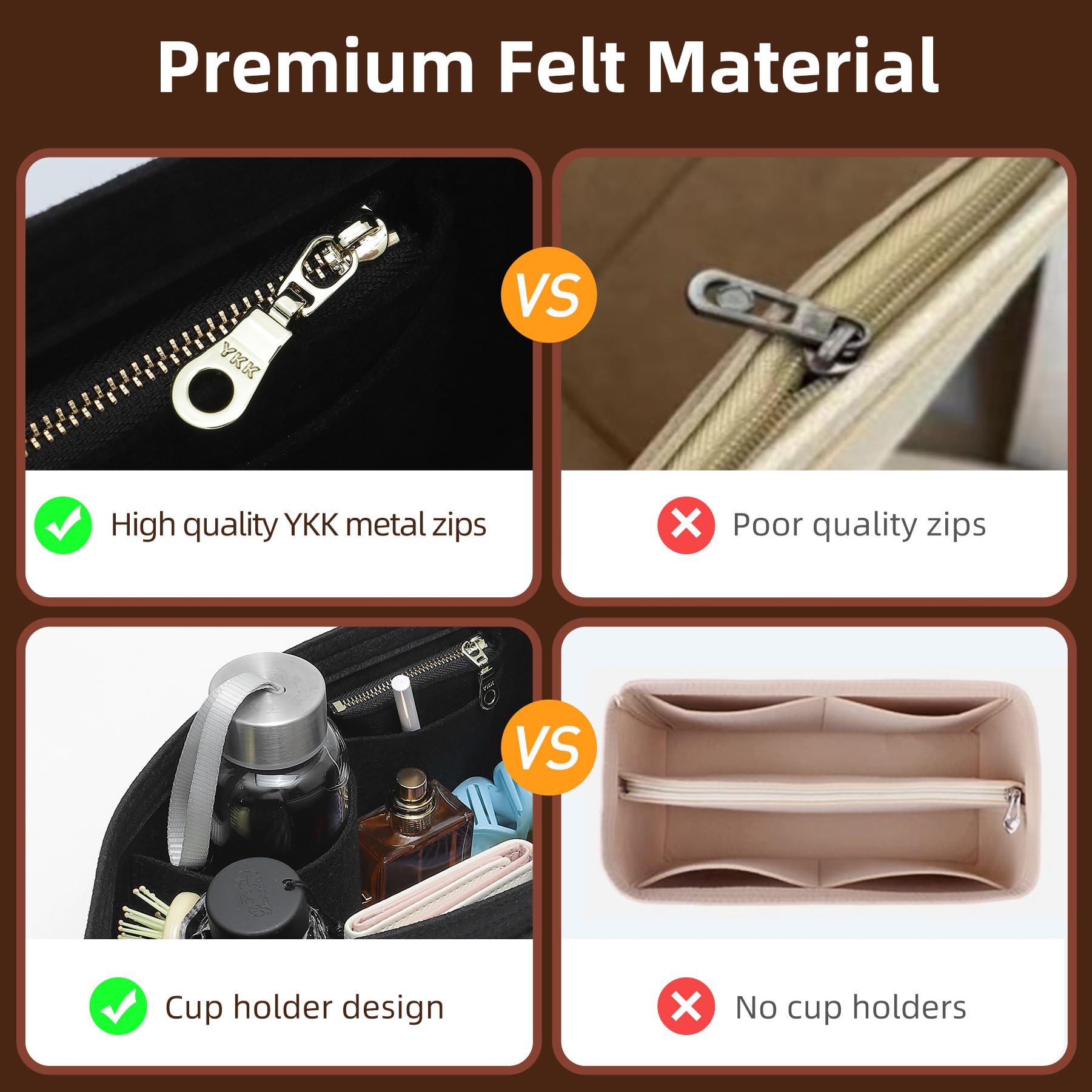 2025 Upgraded Material: Made from premium felt, this Handtaschen Organizer combines sturdiness and softness. It’s lightweight, retains its shape without pilling, and allows for easy insertion and removal without adding weight