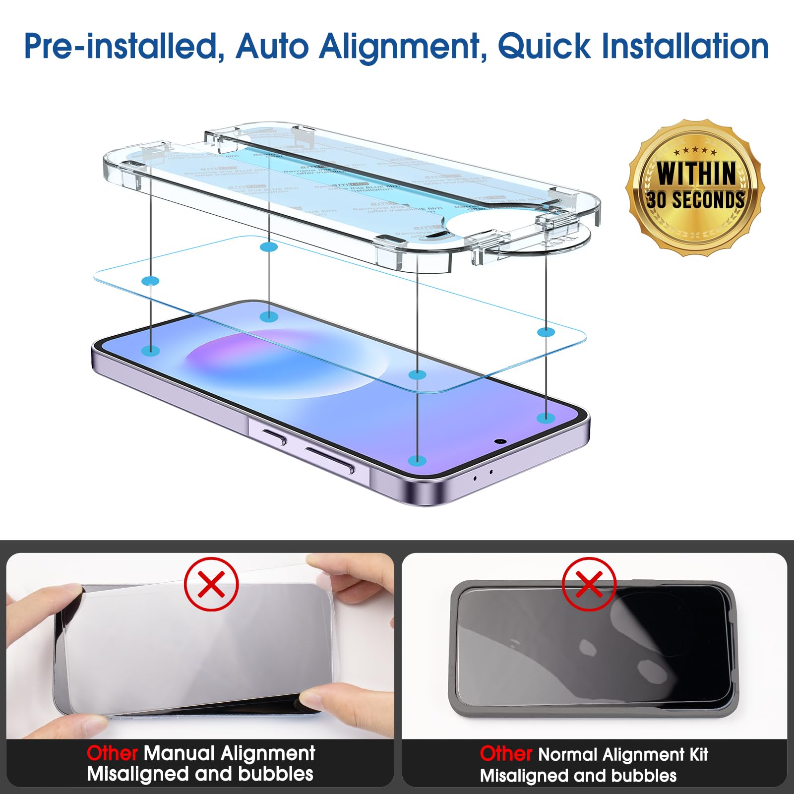 【Ultra-Fast Installation, Auto-Alignment in 30 seconds!】 Installing a screen protector might seem like a headache, but our OneTouch Samsung Galaxy A57 5G 6.7" screen protector is equipped with an automatic alignment kit for a fast installation in just 30 seconds! Say goodbye to the hassle of manual alignment.