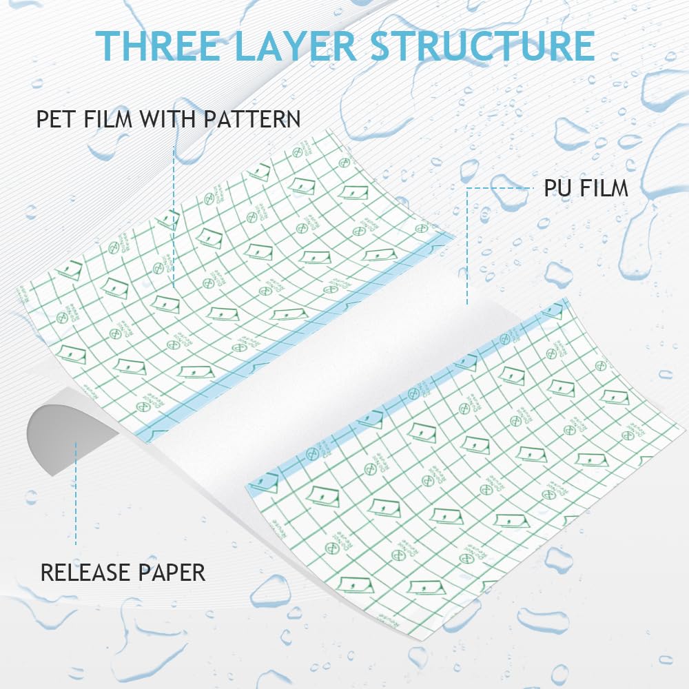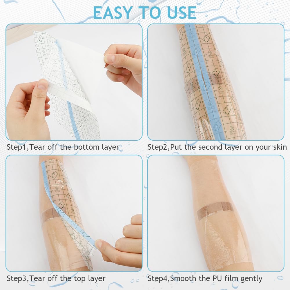 EASY TO USE: Transparent film dressing has three layers, which are composed of PU film, adhesive and release paper, when you use waterproof bandages for wounds, tear off the release paper first, stick the adhesive side on the part you need to stick, then tear off the top layer, and then press gently to fix the position, clear bandages waterproof can not be reused.