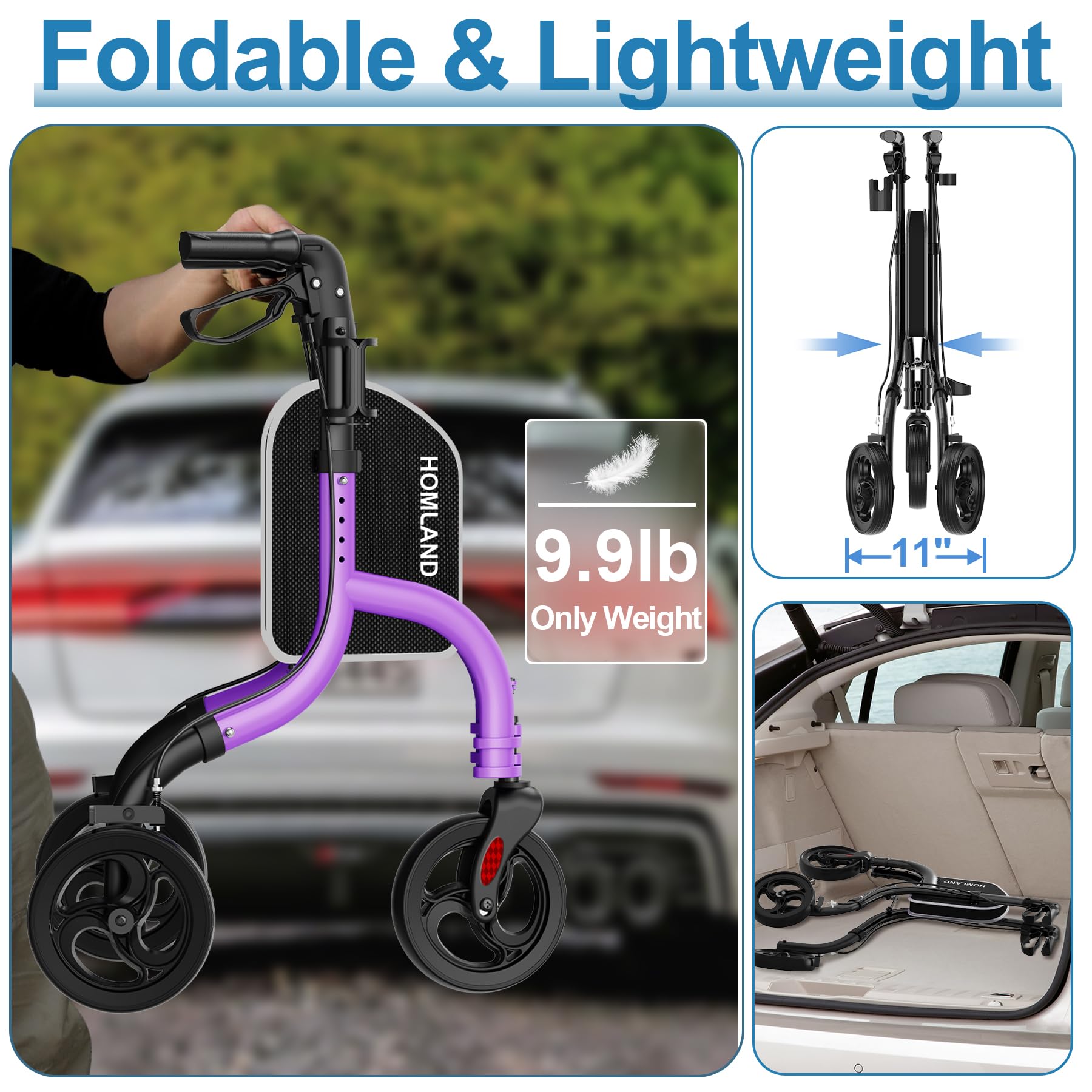 【Lightweight and Strong】 Weighing just 10.4 pounds, this wheeled walker is easy to lift into the trunk, yet its sturdy frame supports up to 260 pounds. With adjustable height ranging from 34 to 38 inches, it accommodates users between 4‘8“ and 6’1”