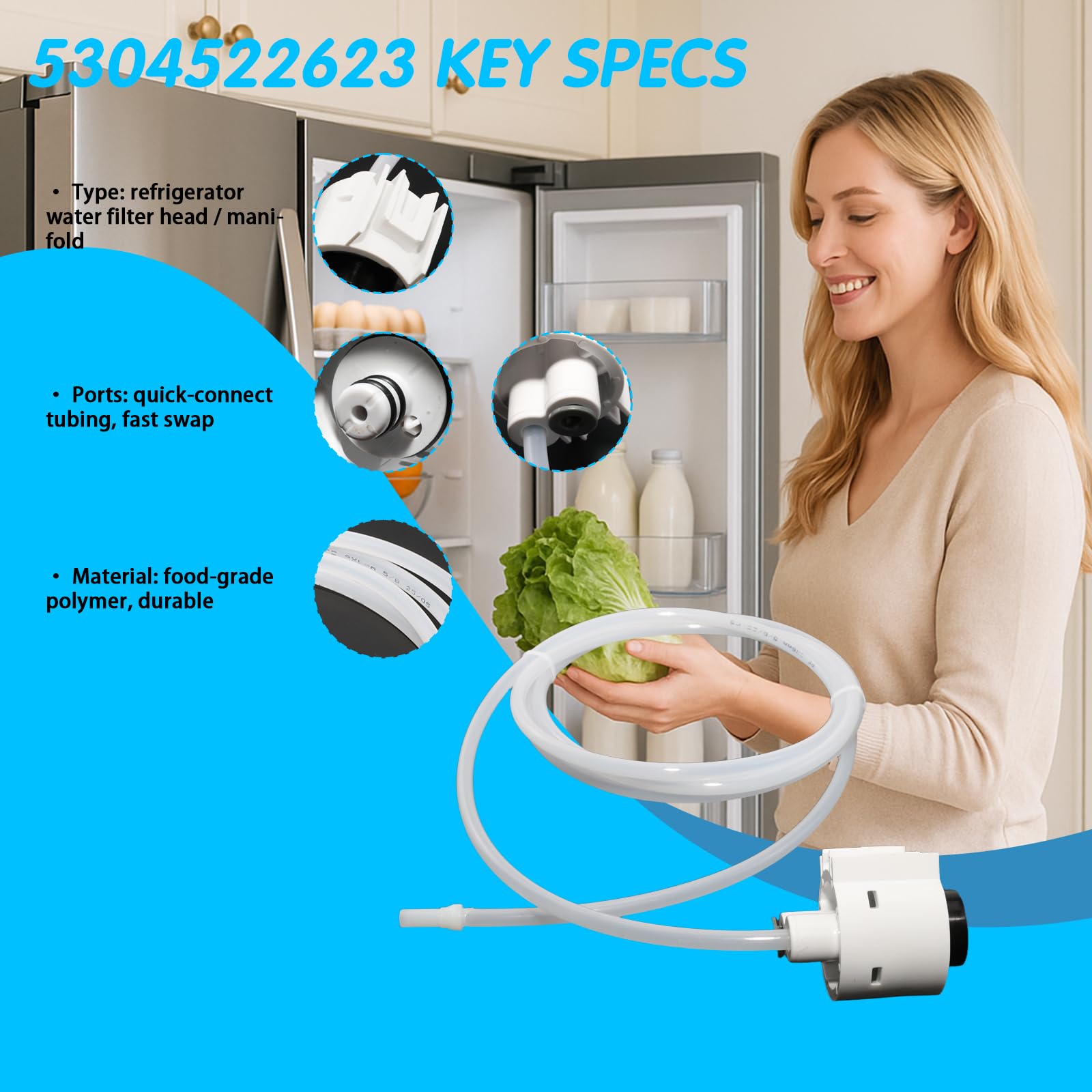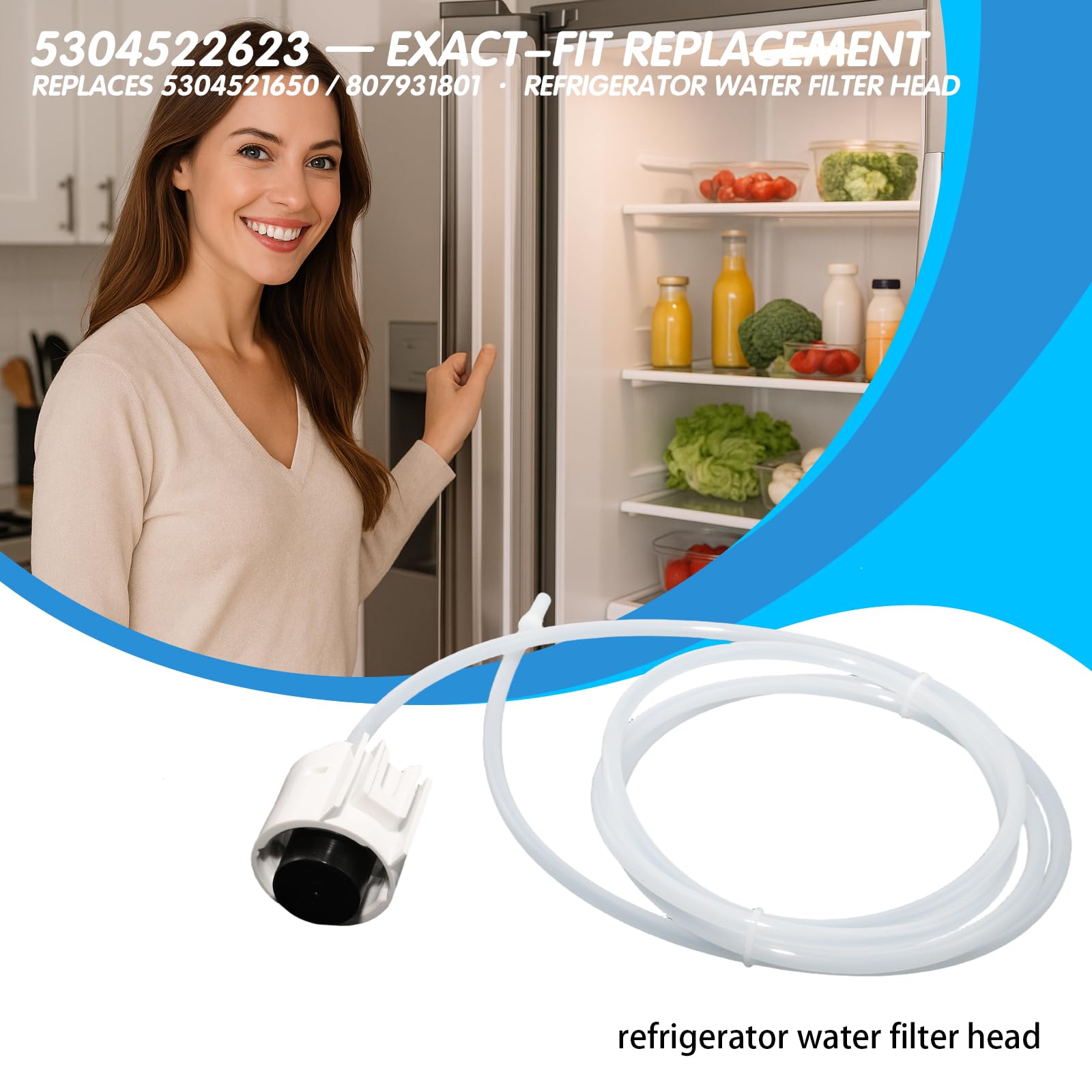 Direct Replacement & Fit — This 5304522623 refrigerator water filter head (manifold assembly) is a precise drop-in that replaces 5304521650 and 807931801; engineered for a leak-free seal for Frigidaire/Electrolux French-door & side-by-side units.