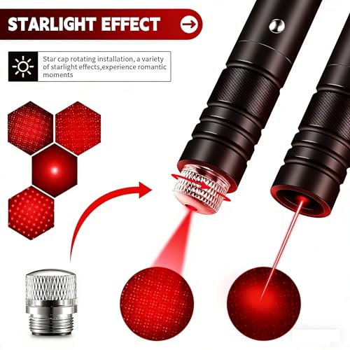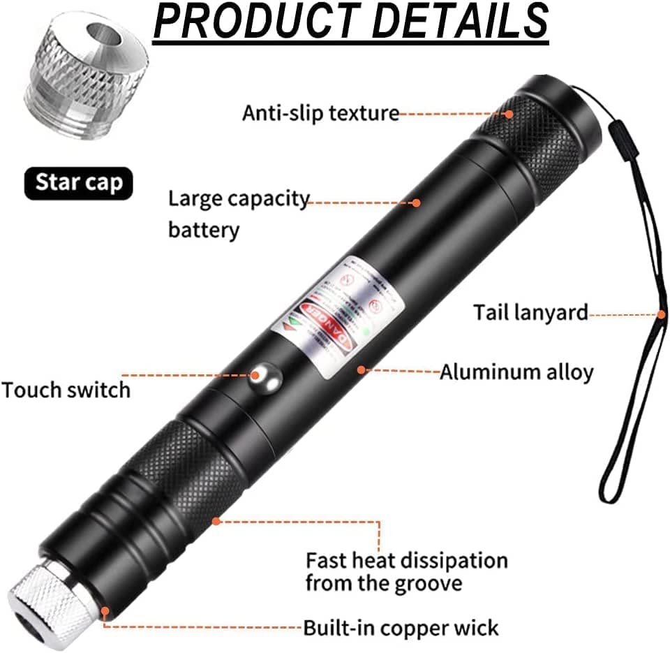High Power Laser Pointer: Remove the silver star cap by rotating, experience the long range laser beam. You can see the Red laser beam trajectory is clearly whether it is day or night, This high power laser pointer can reach 2000 meters at night.