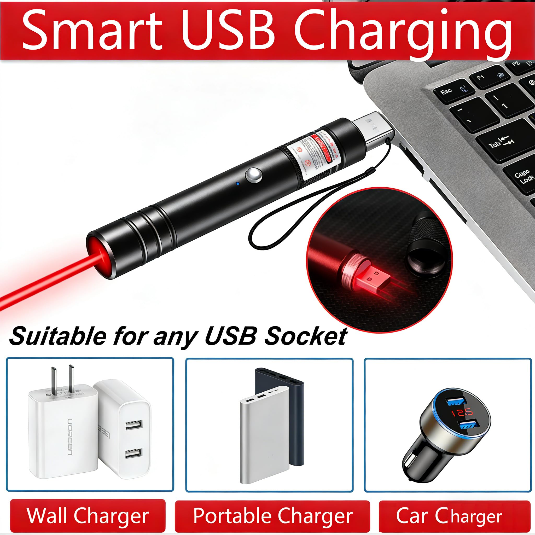 【USB RECHARGEABLE】This Red Laser Pointer High Power Can Be Charged By USB Port. No More Need To Replace The Batteries.rechargeable laser pointer high power laser pointer