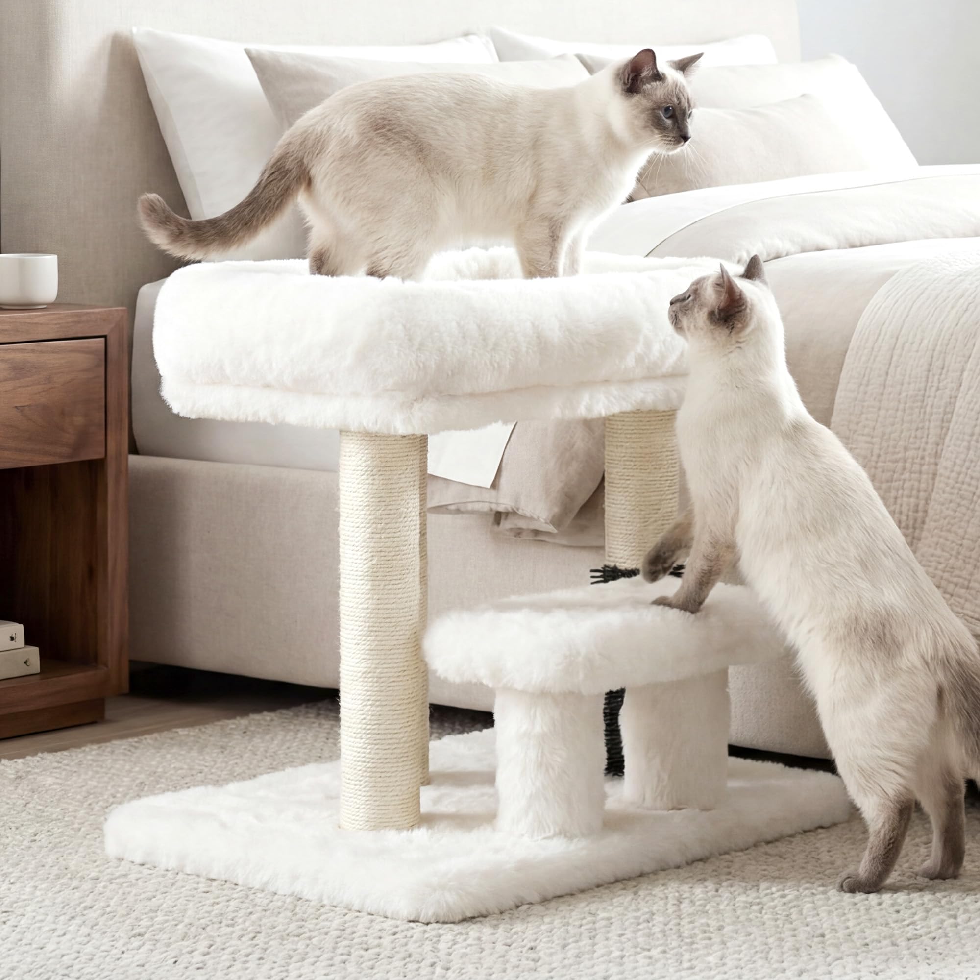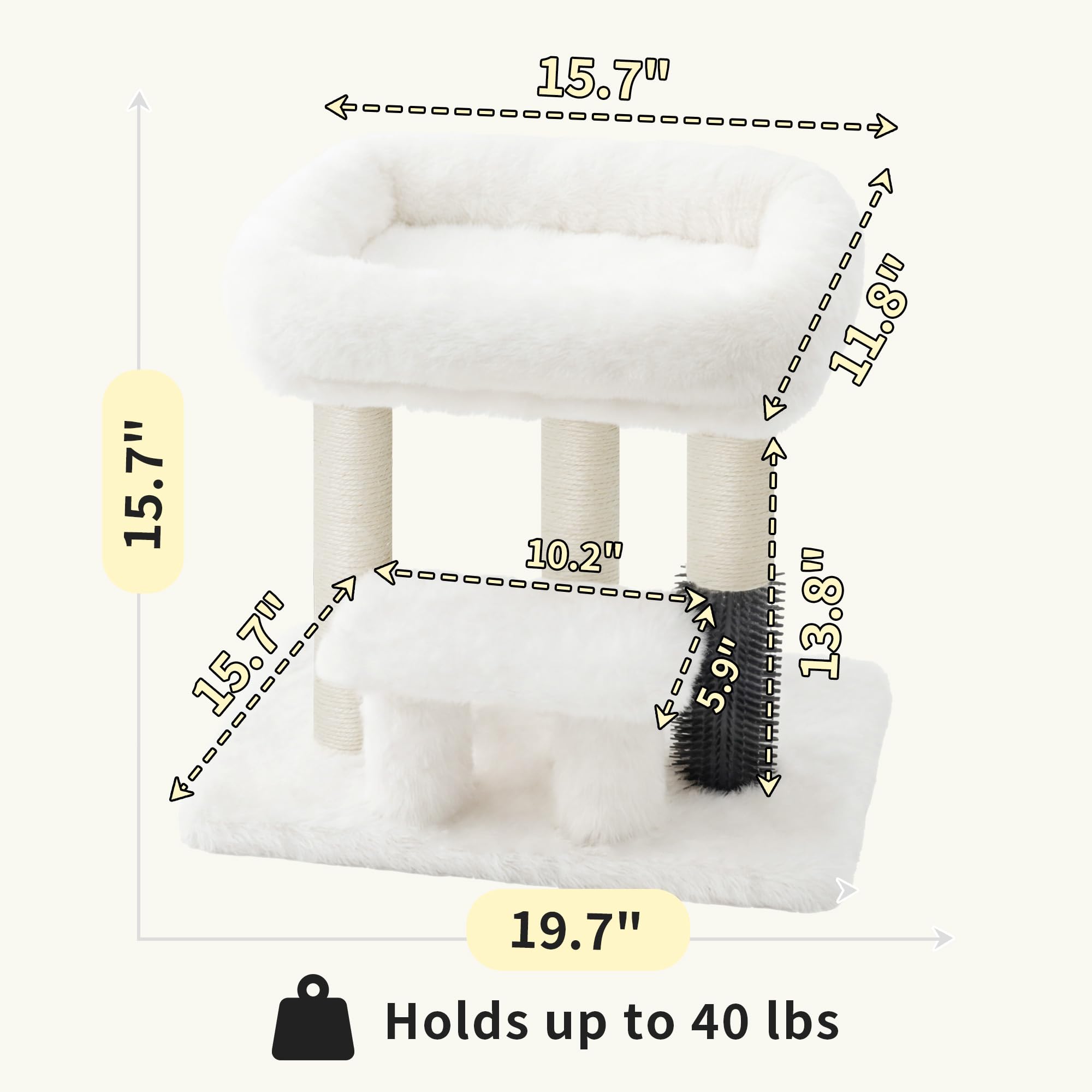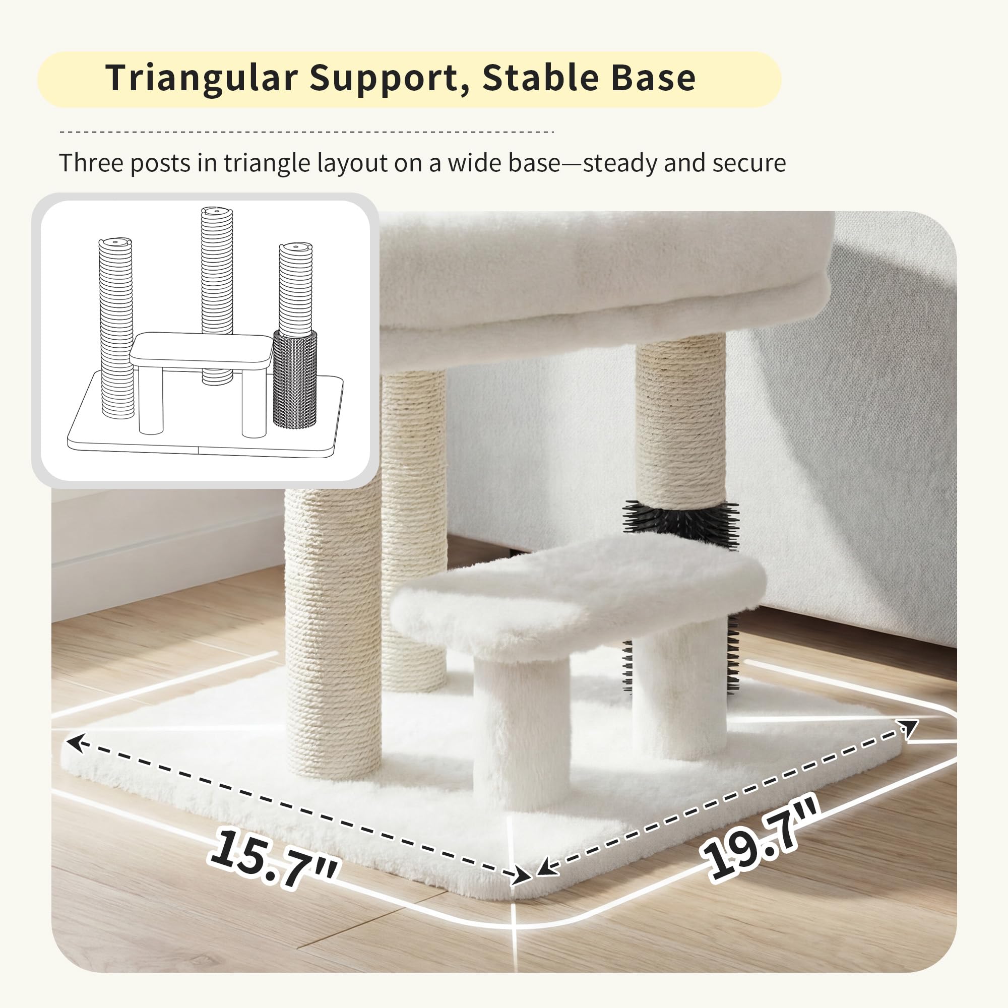 Stable Base & Strong Support: This small-space cat tree boasts an extra-wide non-slip base (19.7" x 15.7"), around 30% wider for enhanced stability, plus three sturdy sisal-wrapped posts and 40 lb load capacity for safe, tip-free play and rest.