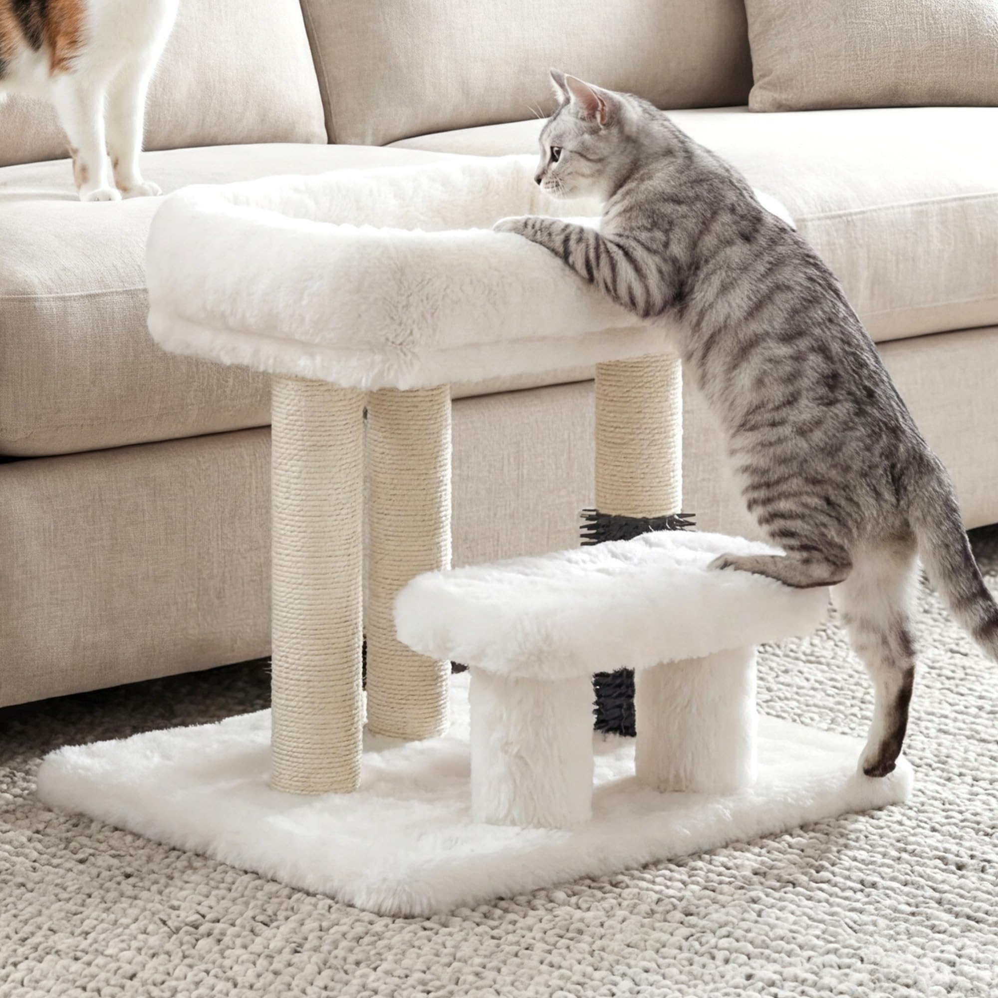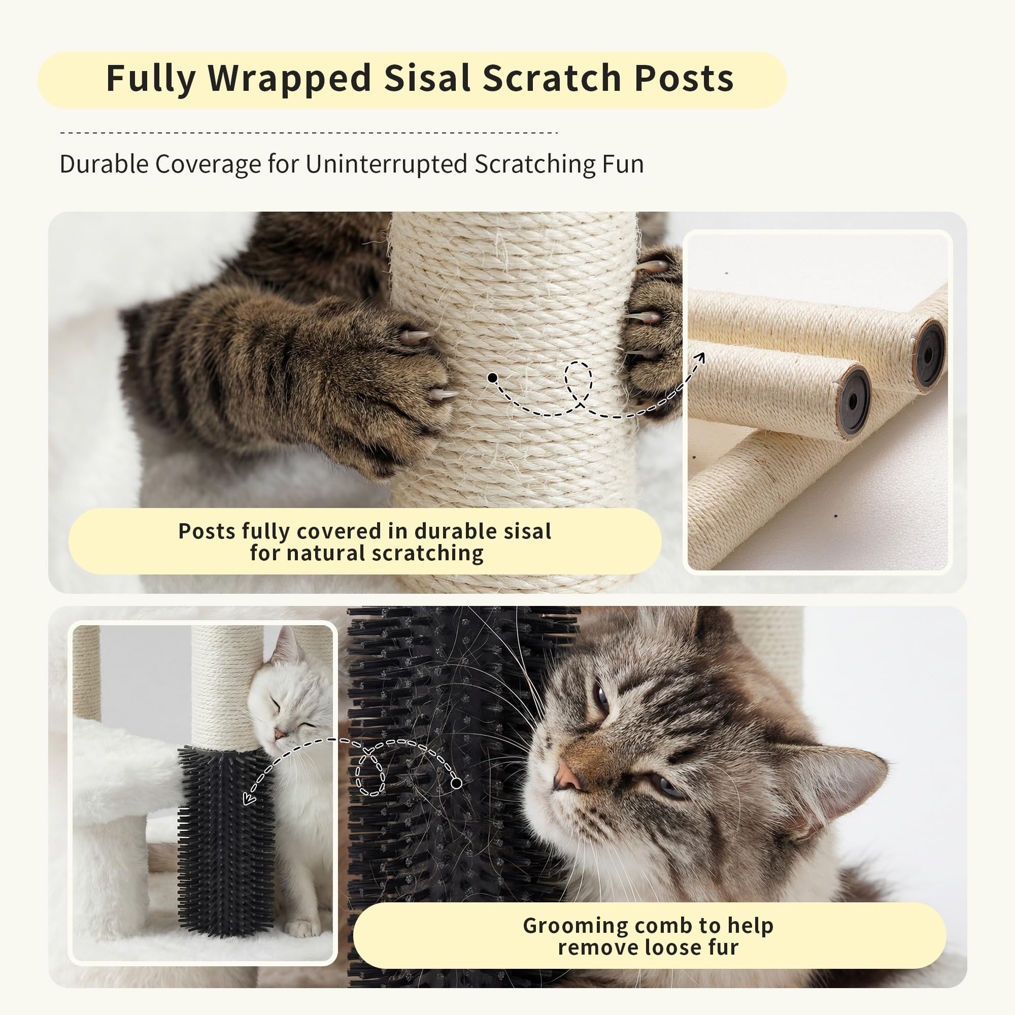 Durable Scratch Posts & Claw Care: Equipped with three sturdy, fully sisal-wrapped scratching posts that help cats maintain healthy claws while protecting your furniture—perfect as a small cat tower for natural instincts.