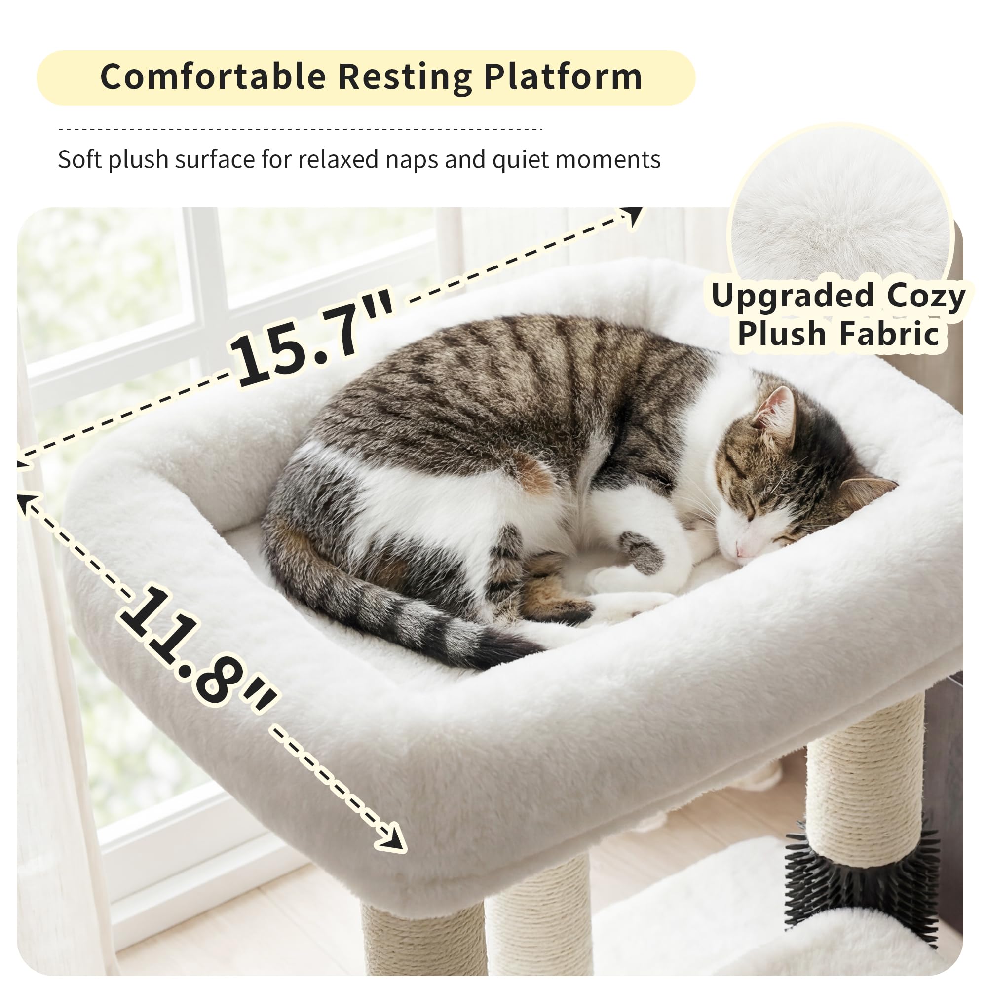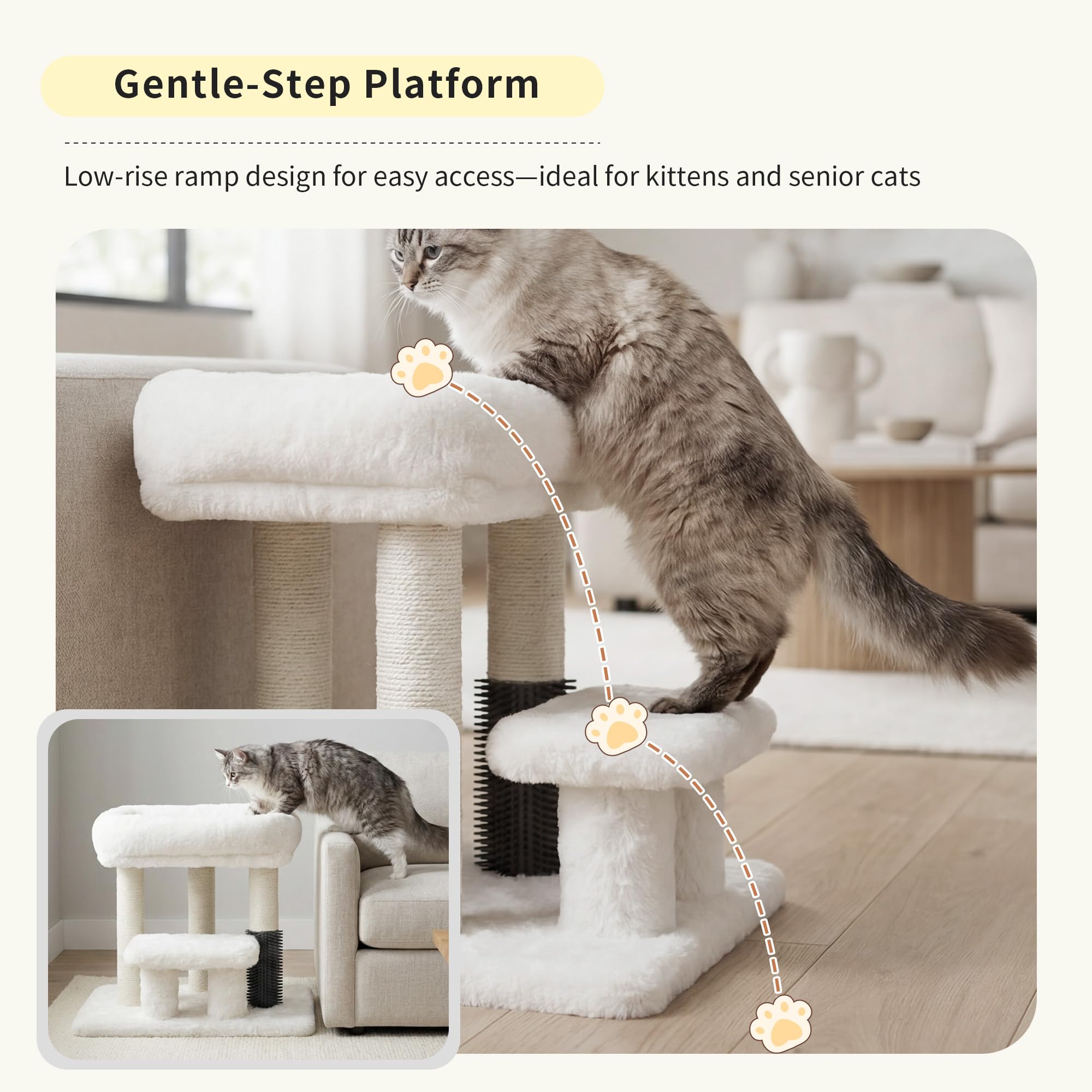 Interactive Design with Grooming Feature: Includes a built-in grooming brush tower on one post, encouraging self-grooming and reducing hairballs—ideal for long-haired cats and kittens on this small cat tree for indoor cats.