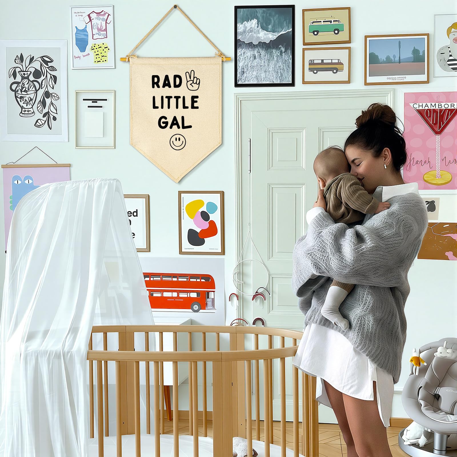 Crafted from natural cotton canvas, this 15.4 x 11 inch nursery wall banner brings a soft and calming touch to baby room, above crib or toddler space. The durable fabric keeps its shape with a natural texture, while the clear print stays bright with everyday use. Lightweight and easy to hang, it comes with a wooden dowel and pre-tied twine for quick setup on walls, doors or shelves. The versatile size fits small spaces without feeling crowded, making it perfect for creating a cozy nursery atmosphere. A thoughtful gift for baby showers, newborn arrival or first birthday.