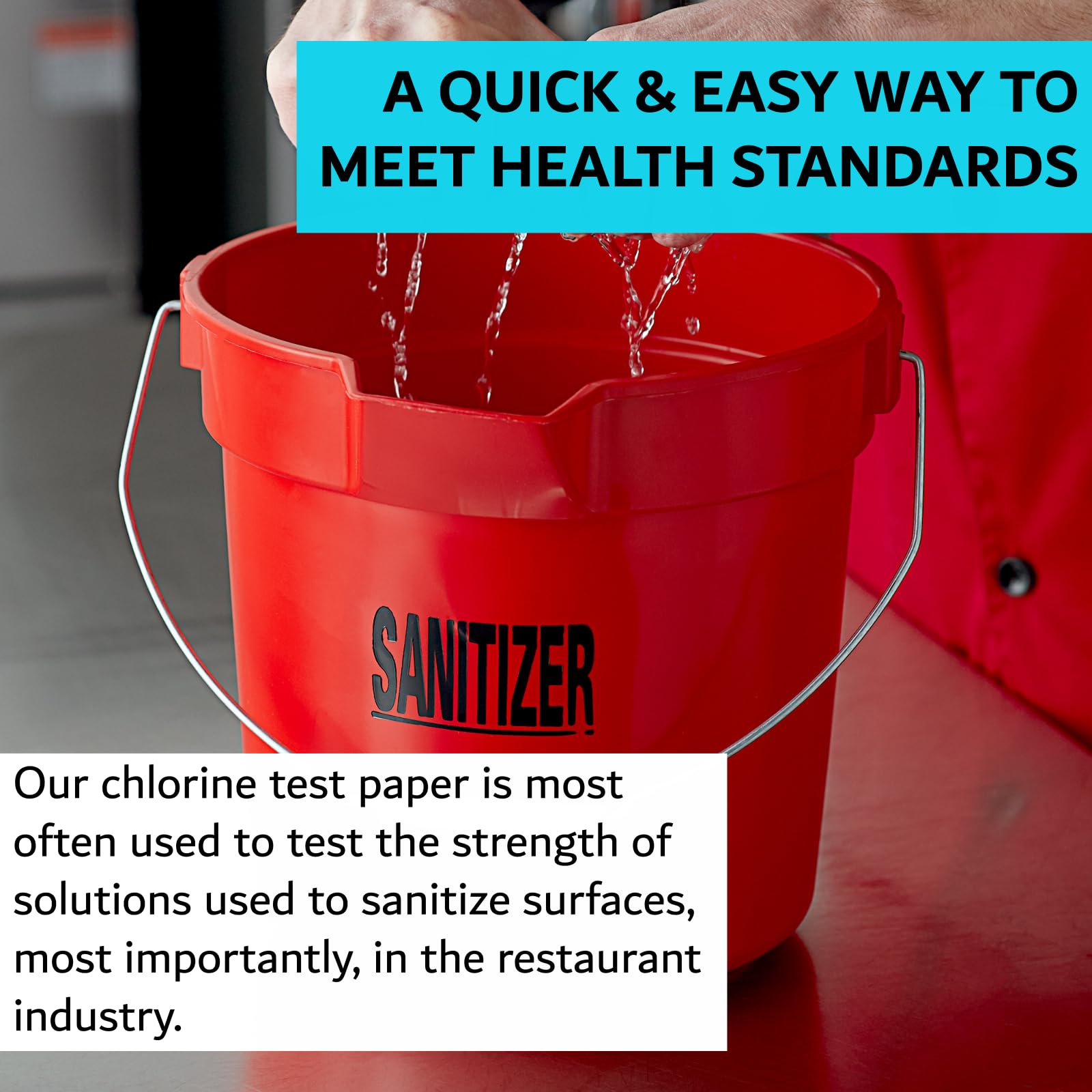 CHLORINE SANITIZER TEST STRIPS FOR FOOD SERVICE SANITATION – Maintain proper sanitization and meet health department regulations with these fast-acting chlorine test strips, designed specifically for restaurants, bars, commercial kitchens, and food prep areas. These easy-to-use strips deliver quick, reliable results to help you accurately monitor chlorine levels in sanitizing solutions. Ideal for checking sanitizer buckets, 3-compartment sinks, dishwashing stations, and food contact surfaces, they ensure your cleaning protocols are effective and fully compliant with food safety standards.