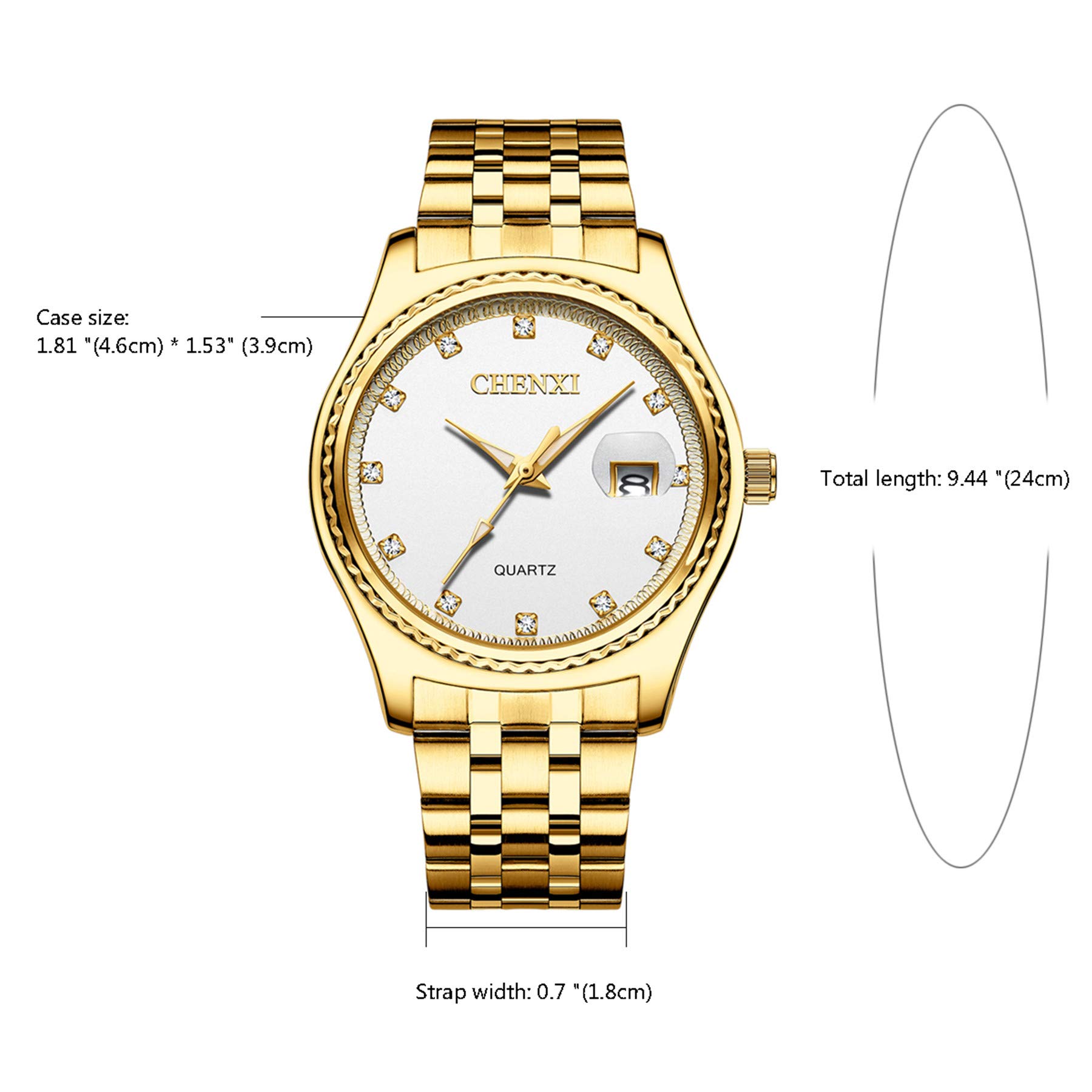 HIGH QUALITY: Gold Plated Stainless steel strap is much comfortable and wear-resistant. Polish metal watch case. Stainless steel back cover, 30M waterproof. Push-button-clasp for convenient use, easy to take on or off. Hard glass is scratch-resistant.