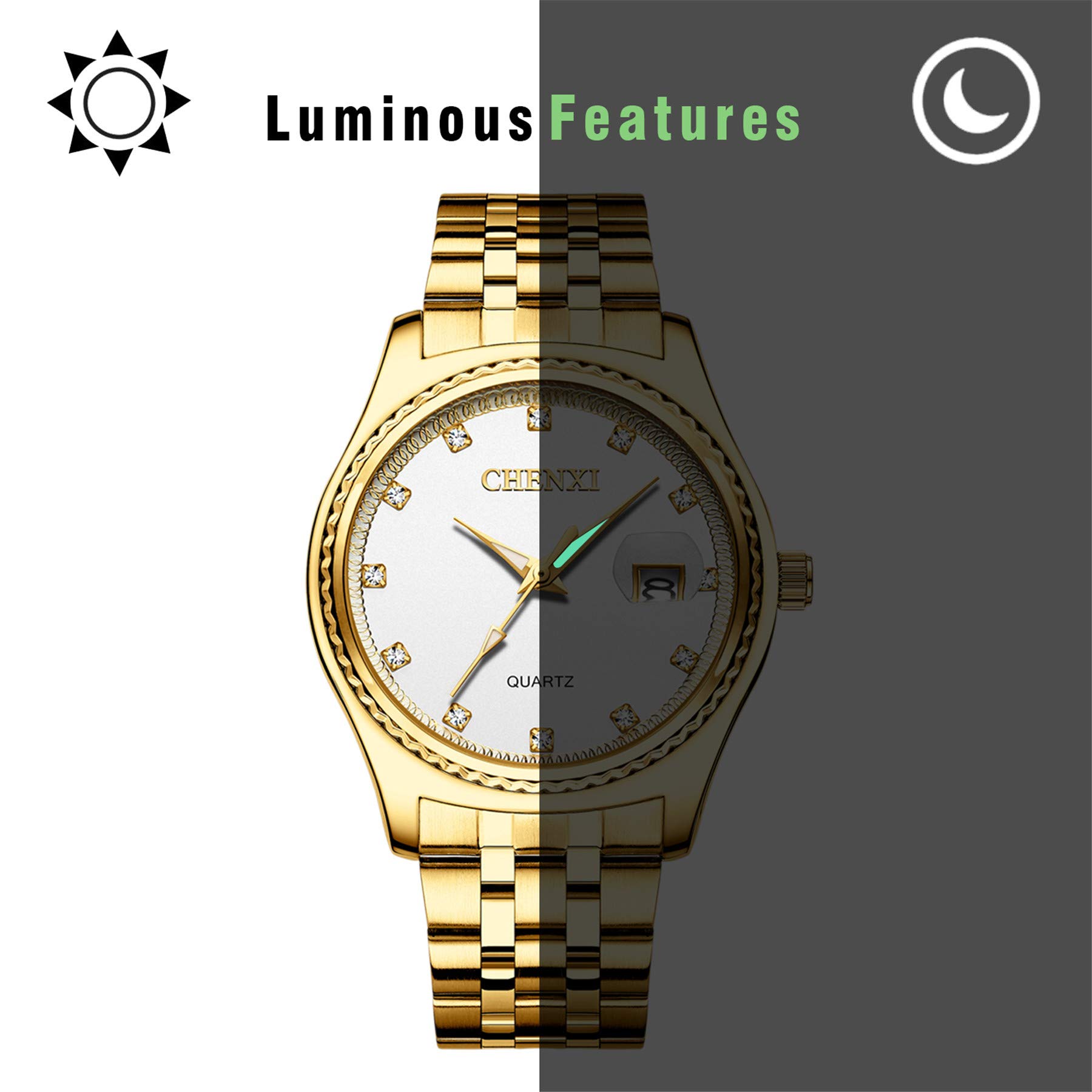 PRECISE TIMING: Simple and luxury wrist watch equipped with quartz movement and battery, providing accurate and constant time keeping. Tell time your way with this watch using clear dial and distinct hands. Luminous hands for clear timing even in the dark. Big and clear calendar window.