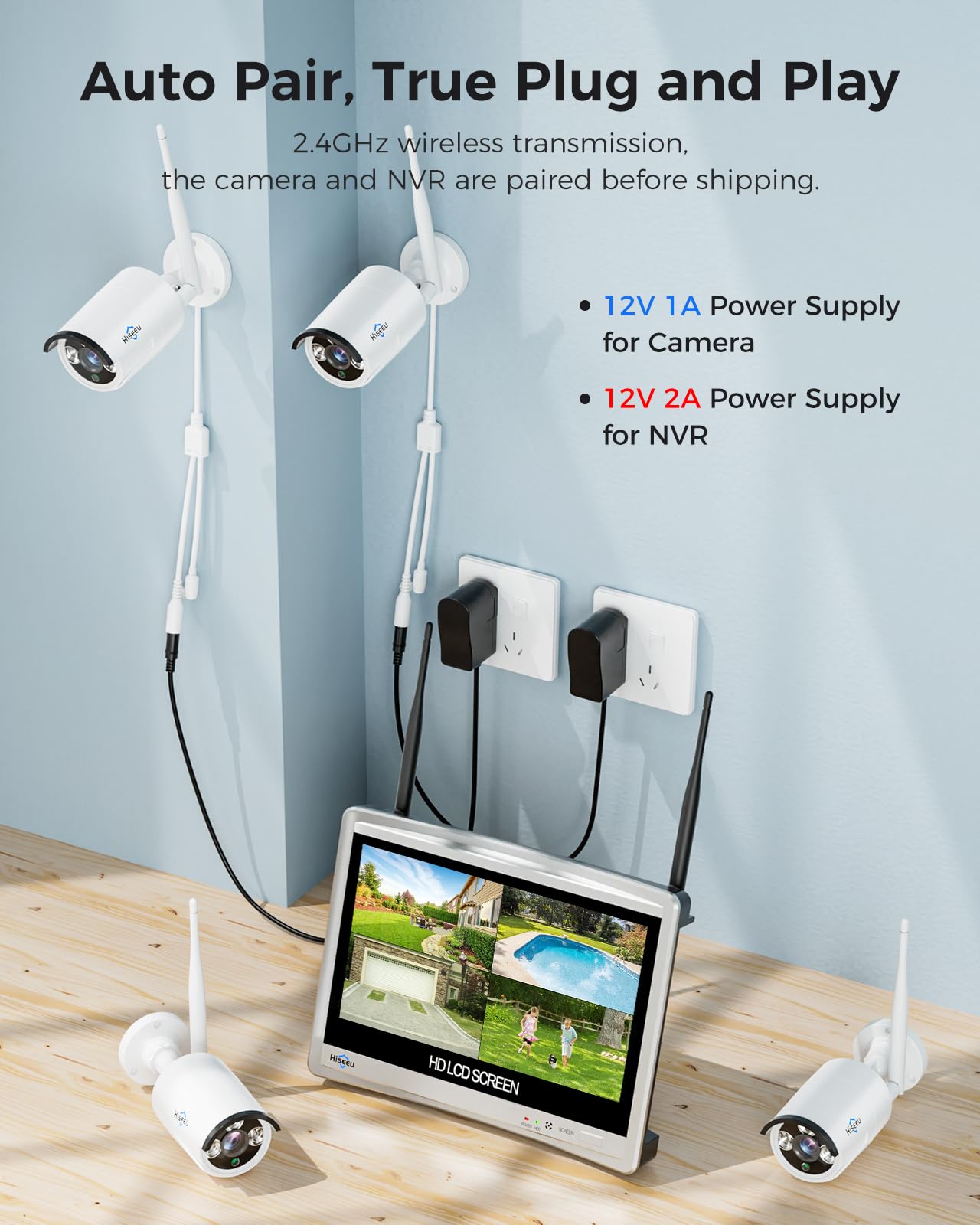 【Plug-in Powered, 24/7 Recording】 Hiseeu security camera system, 24/7 wired power of cameras and NVR support 24/7 recording, no dropouts or battery hassles. 3 recording modes (24/7 recording, motion-triggered recording, or customized recording ), total flexibility