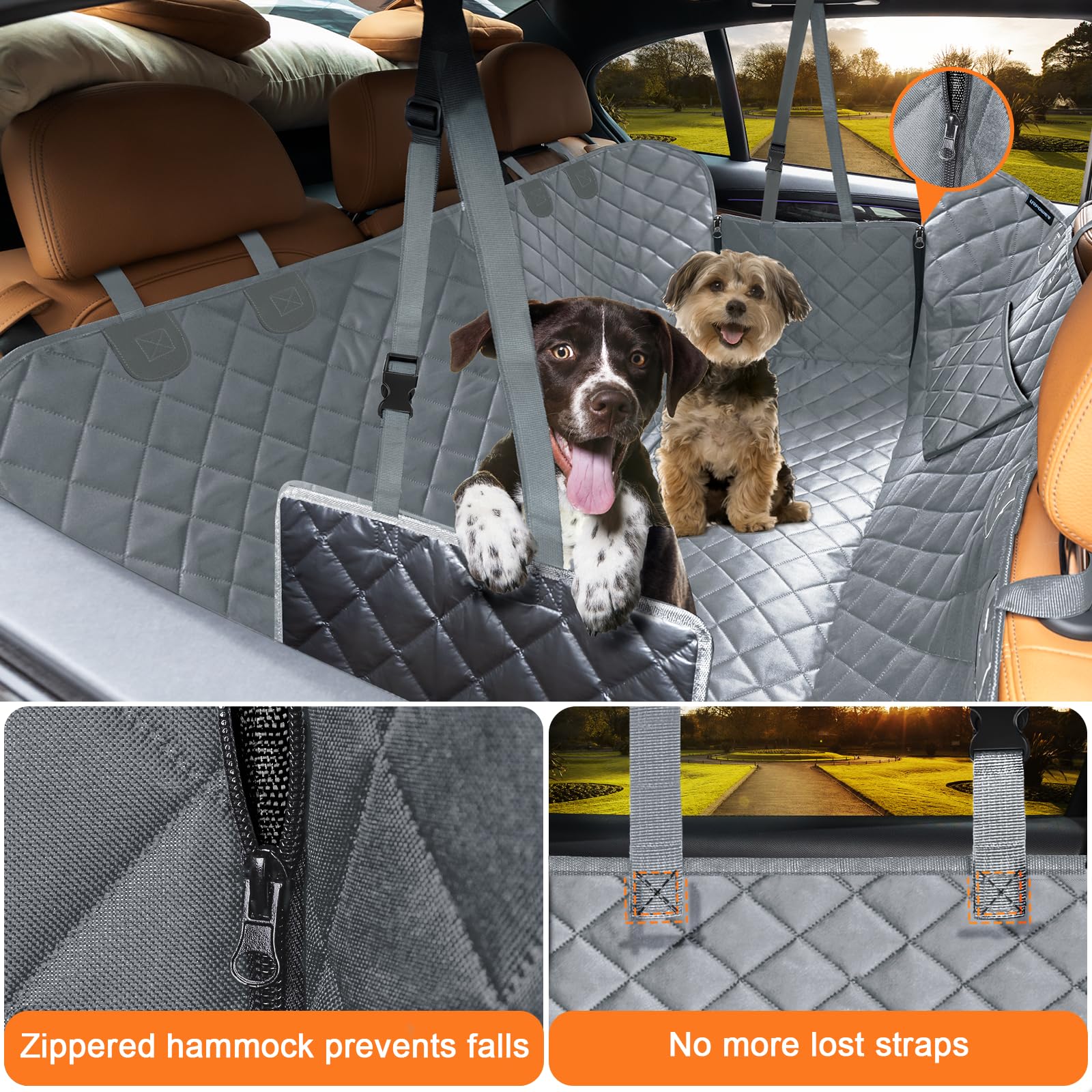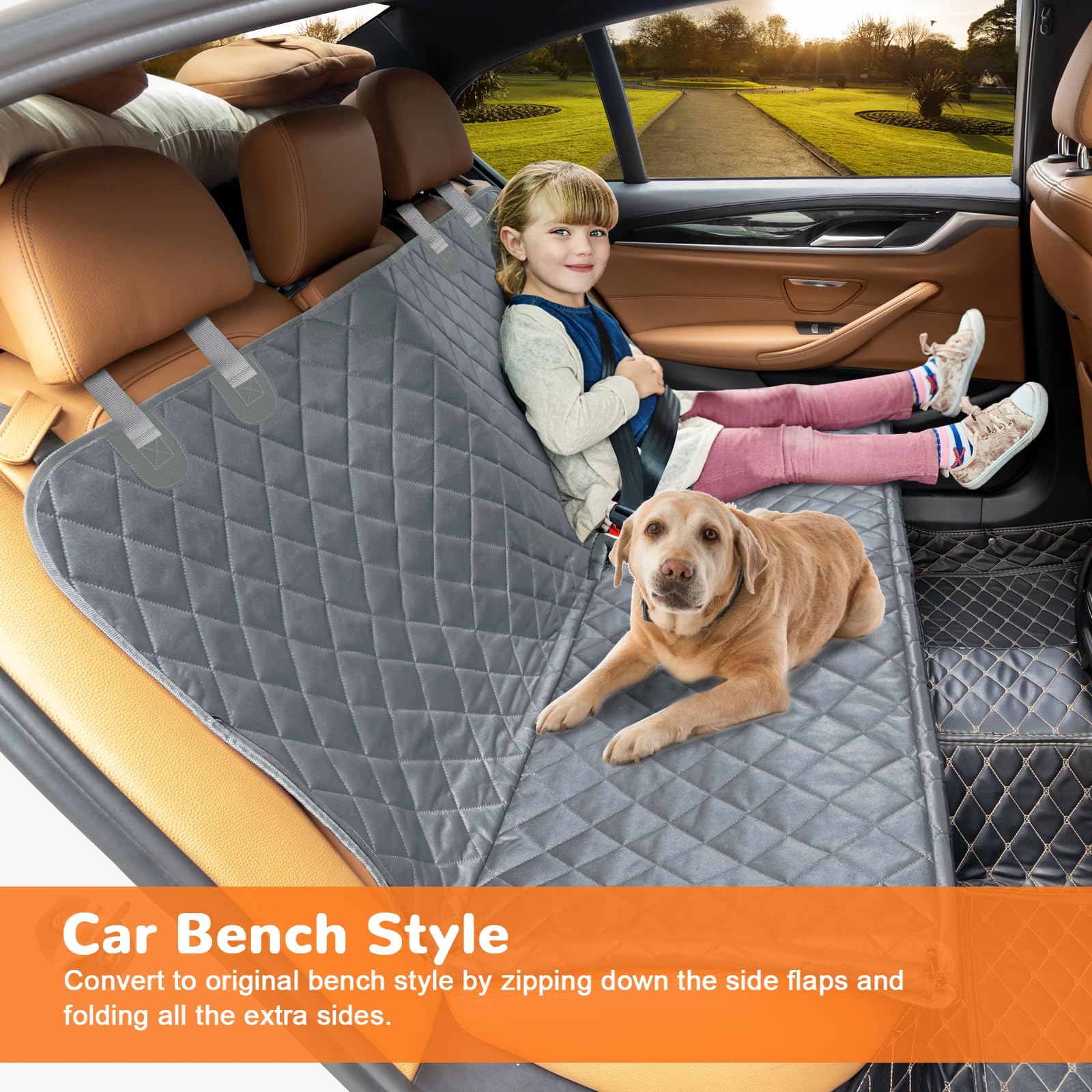 DOG HAMMOCK WITH SIDE FLAPS - URPOWER dog seat cover with side flaps can protect not only your backseat but also the car door from scratches. Side flaps with up/down zipper is easier to help elderly dogs get in and out of the car. It can also easily convert from dog car hammock, to dog bench seat cover, or trunk cargo liner.