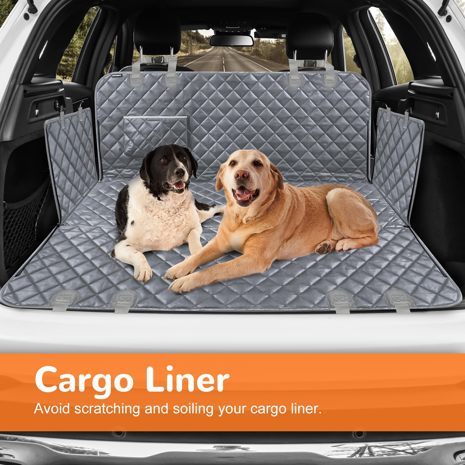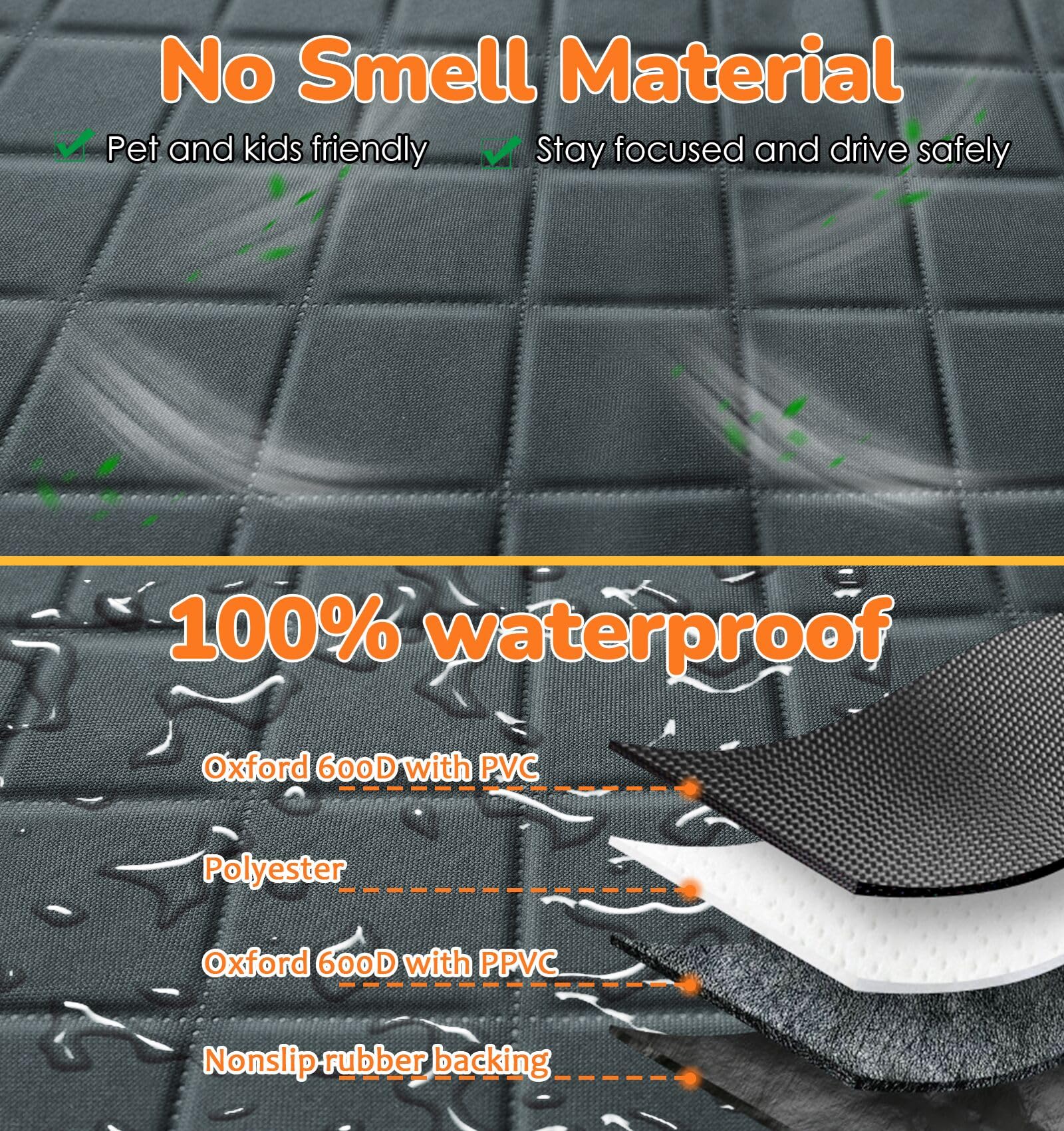 No Smell Material: The dog seat cover without terrible smell is friendly for pets and children. In an enclosed car space, no terrible smell is also important to keep you focused and driving safely, something that others’ dog covers on the market ignore.