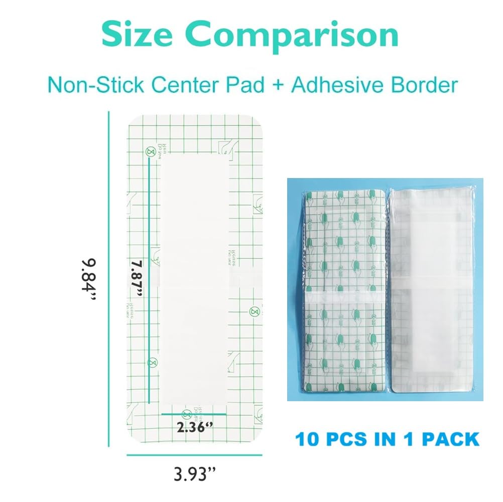 10PCS Film Dressing, Adhesive Wound Dressing Waterproof Bath Posts, Self-Paste Painless Removal Dressing 4 x 10''(10 cm x 25 cm) The waterproof bandage is divided into three layers. Latex free and hypoallergenic adhesive mass avoids any skin irritation. Covers and protects abrasions, cuts, minor burns, blisters, and post-surgical incisions, prevent infection. Flexible and stretchable material enables you to freely move. Transparent and comfortable, large size, easy to use, independent sterilization packaging. PU waterproof material, good waterproof effect, caesarean section or after surgery to use the bath. Features: Good waterproof, suitable for bathing and swimming. Good adhesion, high elasticity, comfortable and soft, not tight. Thickened absorbent cotton, quick suction, does not harm the wound. It is transparent, waterproof, permeable, comfortable. and widely used in medical dressing fixing, cannula fixation, plaster fixing abd bedsore prevention etc. It is easy to use. It can effectively protect skin trauma and prevent moisture and bacterial infection by it' s high permeability. The solvent acrylic adhesive can minimize damage on skin and especially suitable for sticking long time on skin. Composed of PET backing, PU film, medical pressure-sensitive glue and release paper. Specification: Color: Transparent Material: PU film, adhesive and release paper Size: 4 x 10''(10 cm x 25 cm) Advantage: Covers and protects abrasions, cuts, minor burns, blisters, and post-surgical incisions, prevent infection. It can minimize damage on skin. Special island pad absorbs all blood and wound exudate and provide a soft cushion to the wound. The pad does not stick to the wound and hence the removal is painless. Very suitable for swimming, bathing, sauna, and other occasions when the skin needs to be close to water to protect the wound. How to Use? 1, Clean the skin, tear open the paper strip 2, Apply PU film to the skin without any small bubbles 3, Tear off other pieces of paper, press around carefully and tear 4, Carefully organize the PU film to avoid sticking and squeezing together Package Include: 1 Bag of Adhesive Wound Dressings (include 10pcs)
