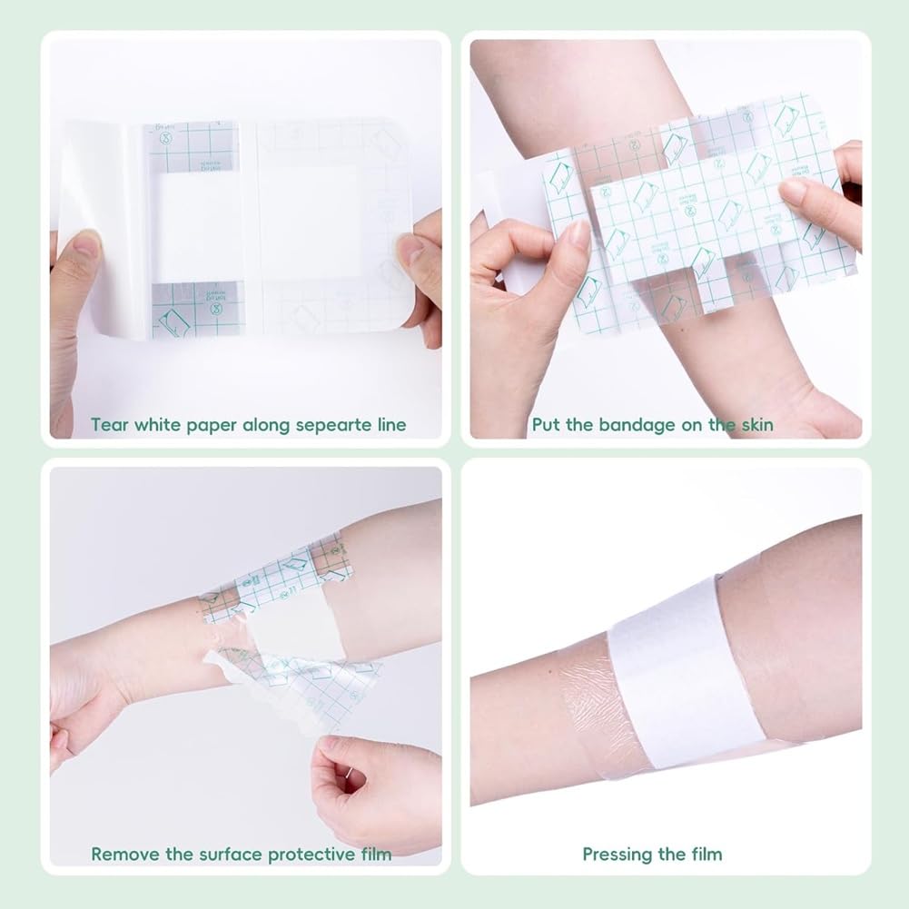 Easy to Use: The transparent adhesive bandage has 3 layers, which are the top PET layer, transparent PU film on the middle, and the bottom release paper. First, peel off the bottom release paper along separator line. Secondly, apply the PU film on the skin. Then peel off the top layer and smooth the PU film gently to the skin. Rubbing alcohol before applying to blend it in better. And be completely dry for the patches to stick and stay. Super easy to put on and painless to remove!