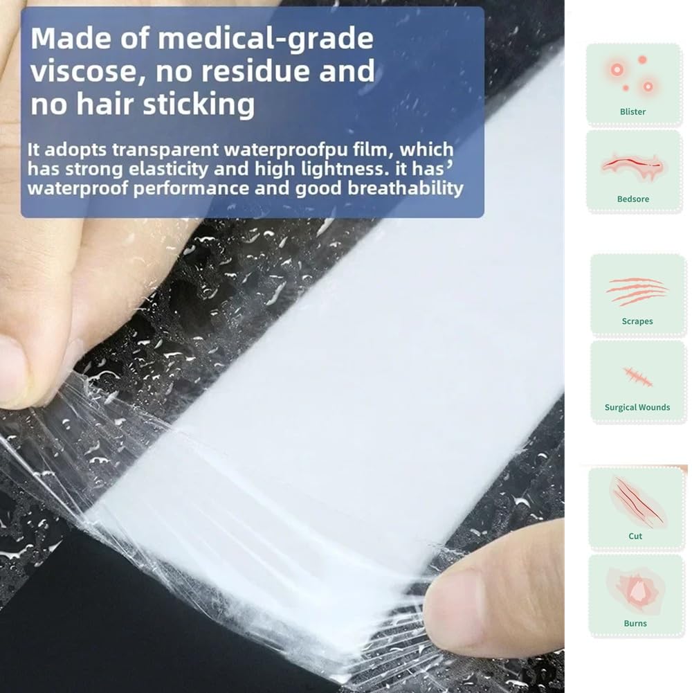 Waterproof & Adhesive: It's the PU waterproof material, forms a strong seal that keeps the wound dry while bathing or showering. Its flexible structure adapts to body contours, allowing uninterrupted hygiene without compromising wound protection. The tattoo aftercare bandage uses medical grade adhesive which is hypoallergenic to skin. It has good adhesion to stick well on your skin, and can be removed easily without leaving any glue residue on it.