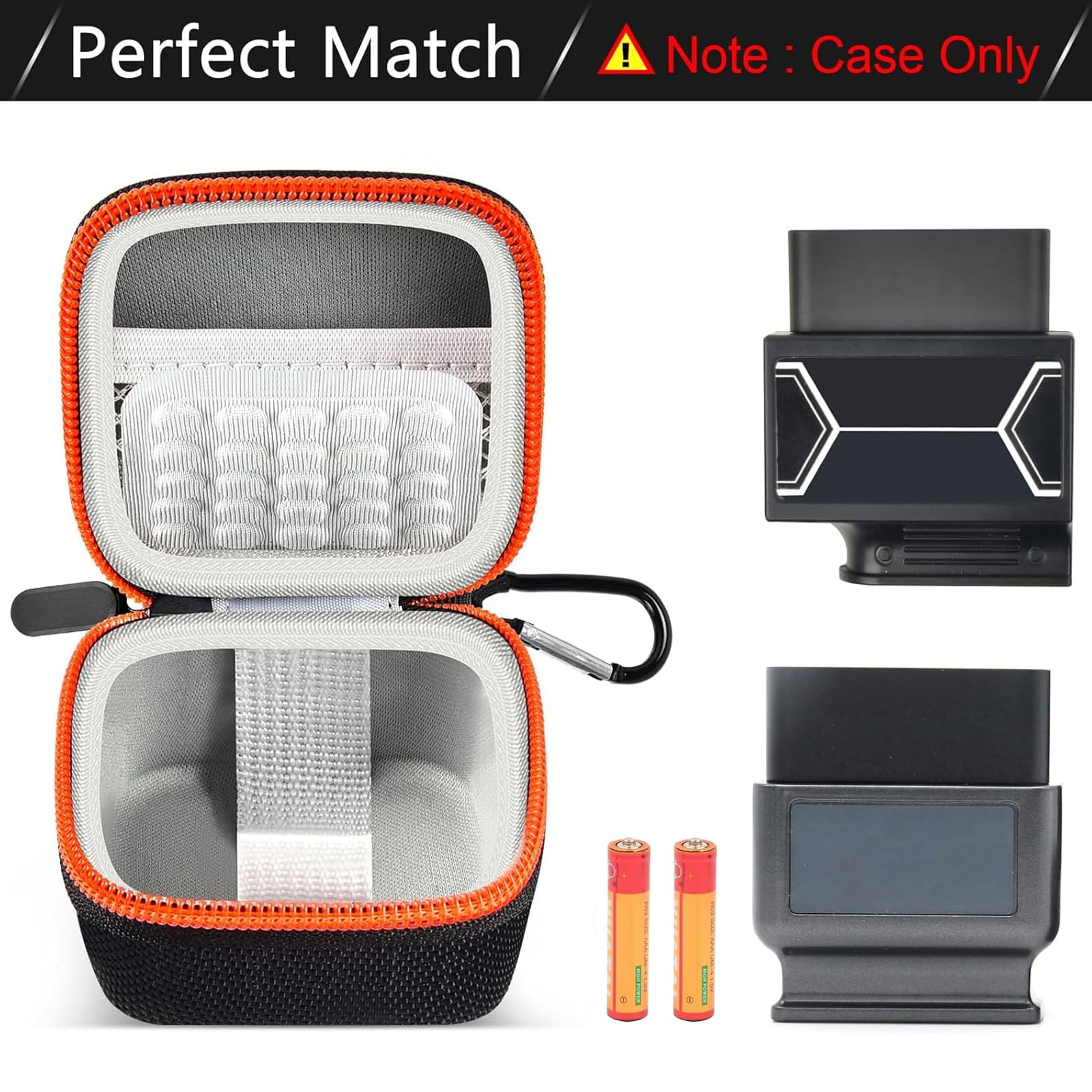 Travel case for bluedriver, veepeak code reader: Car code reader storage box design for BlueDriver Bluetooth Pro OBDII OBD2 LSB2 Scan Tool for iPhone & Android, for Veepeak OBDCheck BLE OBD2 Bluetooth Scanner Auto OBD II Diagnostic Scan Tool. Bag for obdii scanner bluetooth is convenient for anywhere. Good gifts for mini code readers & scan tools are suitable for home storage. External size : 3.15*3.15*1.96 inches. Device and accessories are not included