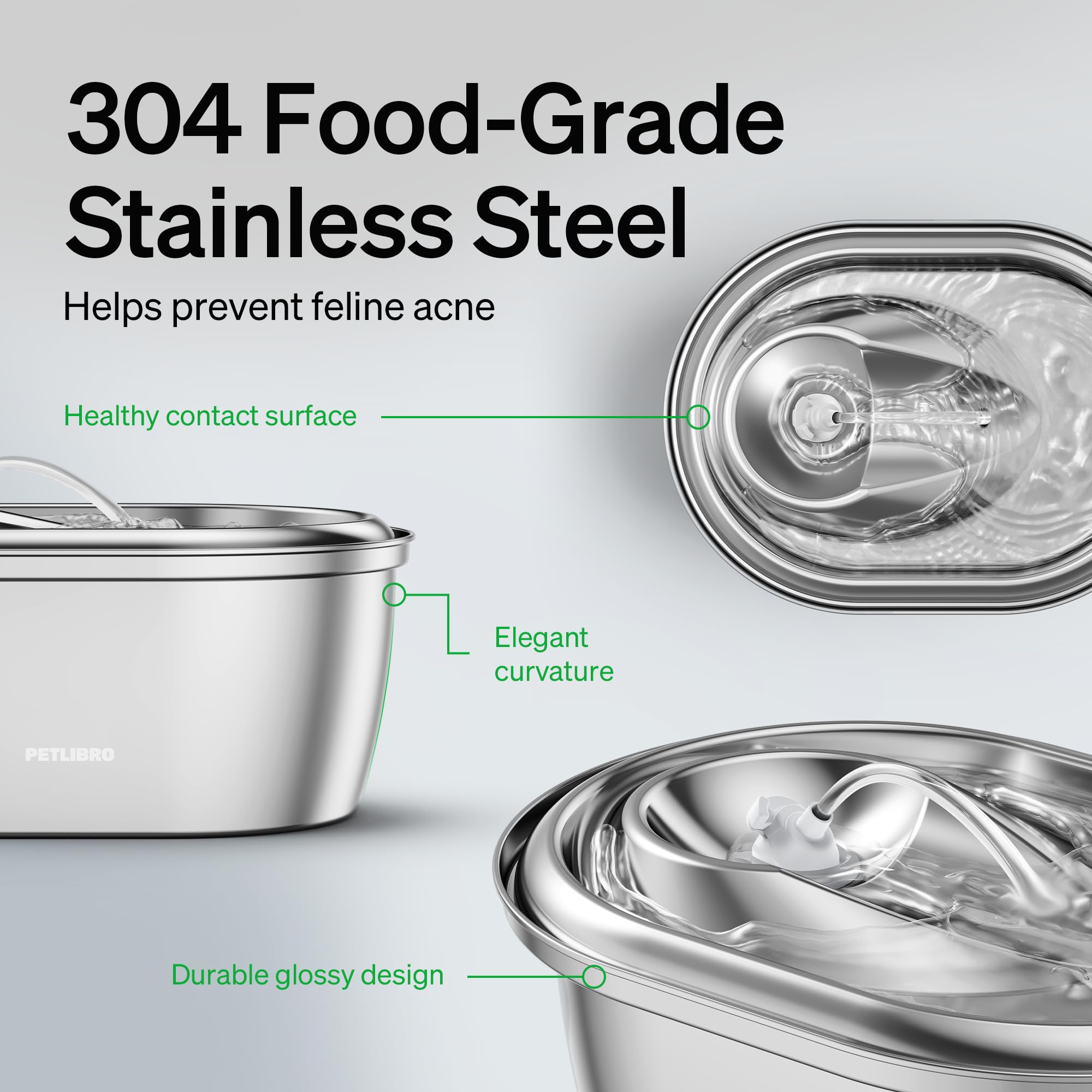 Durable 304 Stainless Steel & Dishwasher Safe: PETLIBRO cat water fountain made of 304 stainless steel, it is BPA-free, rust and corrosion-proof. Only the stainless steel part can be washed in the dishwasher.