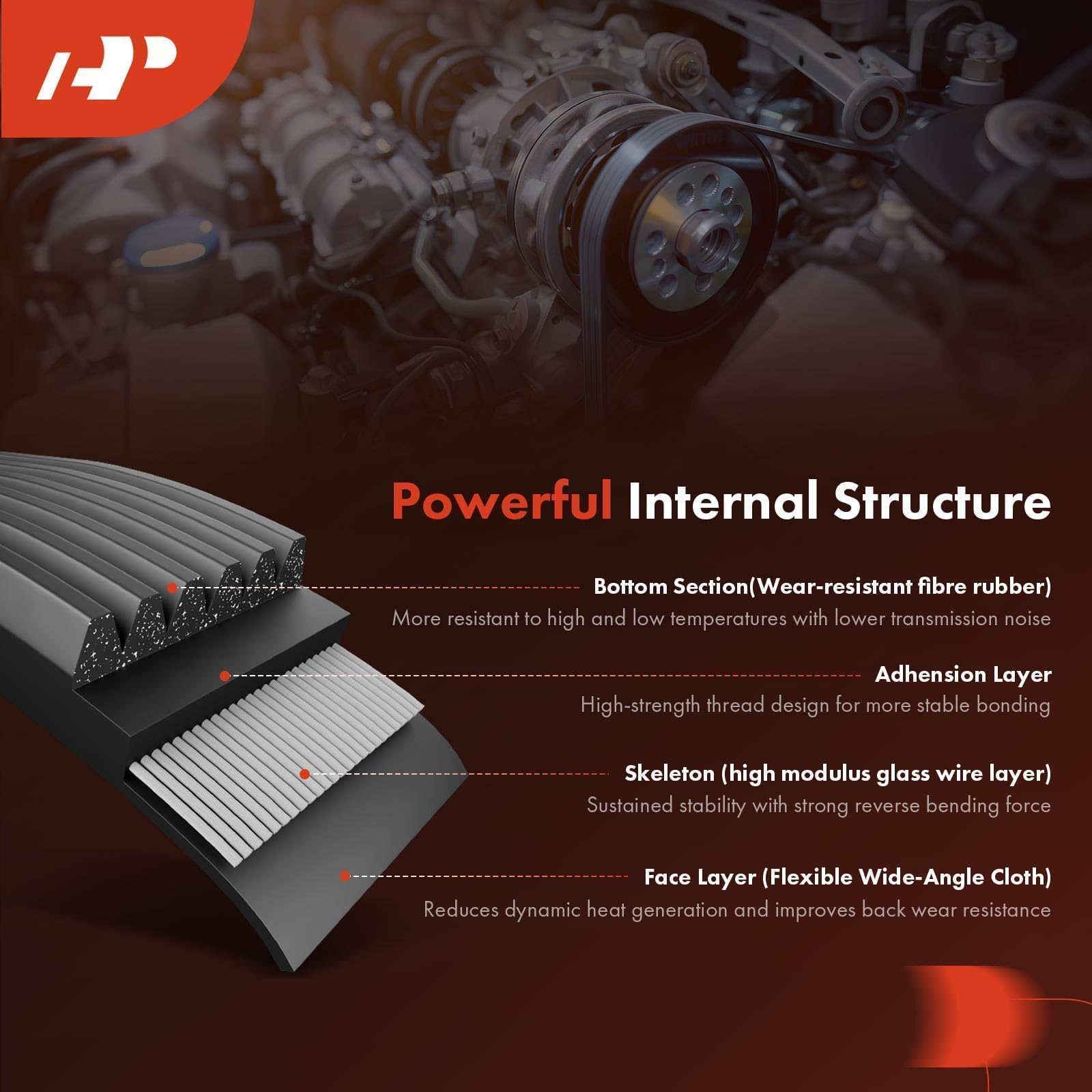 [Key Advantages]: The A-Premium serpentine belt features premium EPDM rubber, delivering enhanced resistance to cracks, corrosion, oils, and contaminants. It integrates tool-free installation with industrial-grade reliability, ensuring stable performance in high-temp/high-load environments. Precision-engineered dimensions enable precise tension and alignment control, significantly reducing vibration and noise. To ensure long-term performance, prioritize tensioner inspection before installation