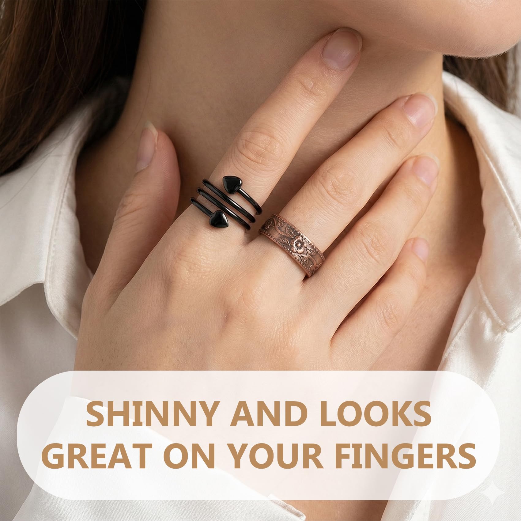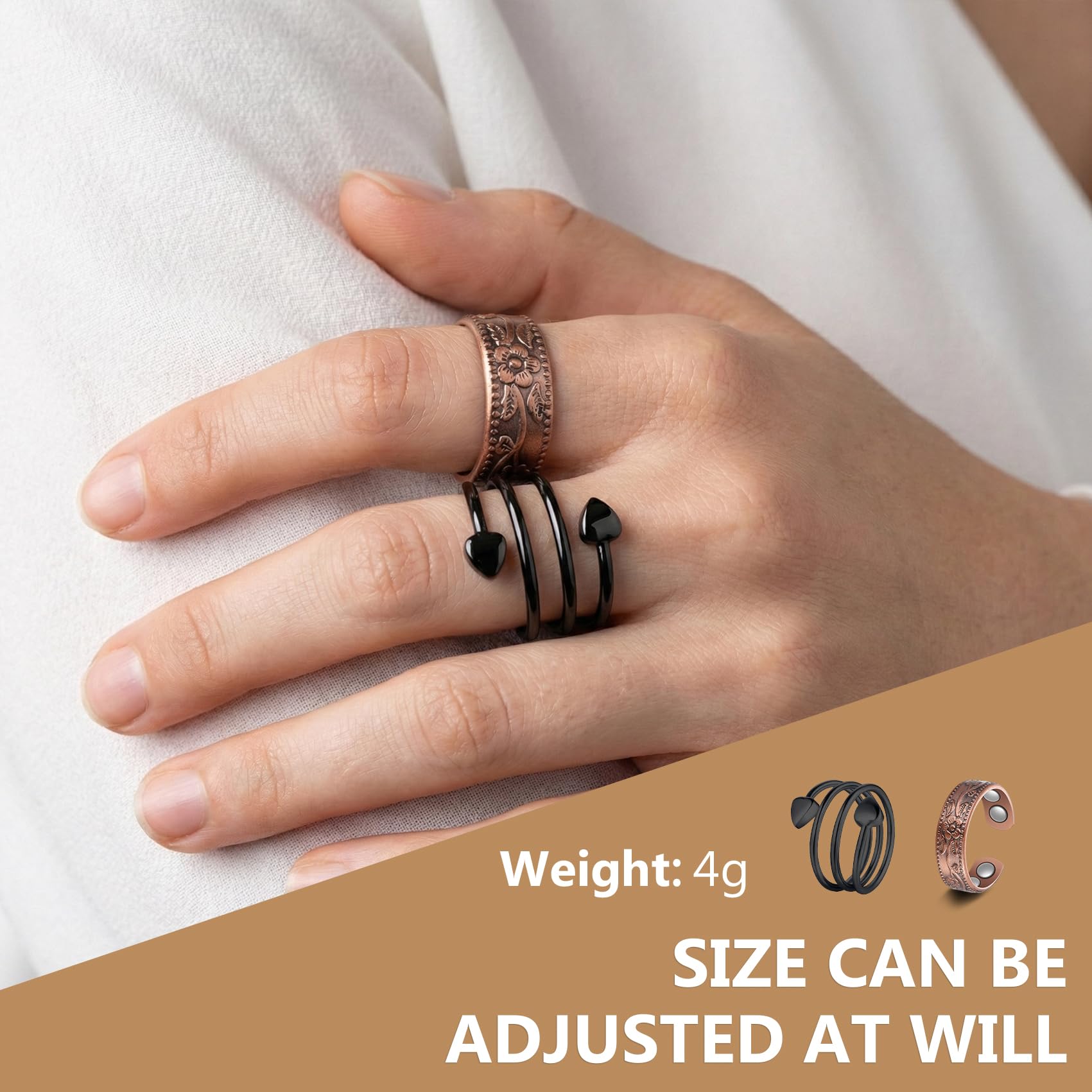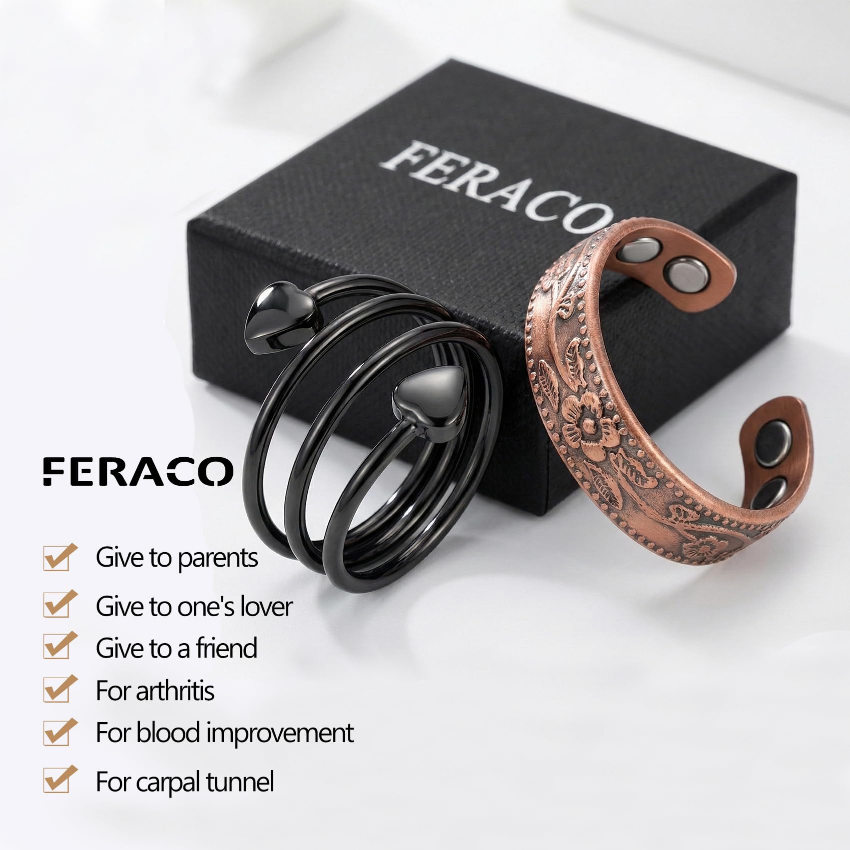 Description Feraco 2PCS Magnetic Copper Rings For Women,Valentine's Day Gifts For Women,99.99% Pure Copper Adjustable Thumb Ring.Keep away from All CHILDREN,Swallowed magnets can damage internal organs and have resulted in DEATH and SERIOUS INJURIES.