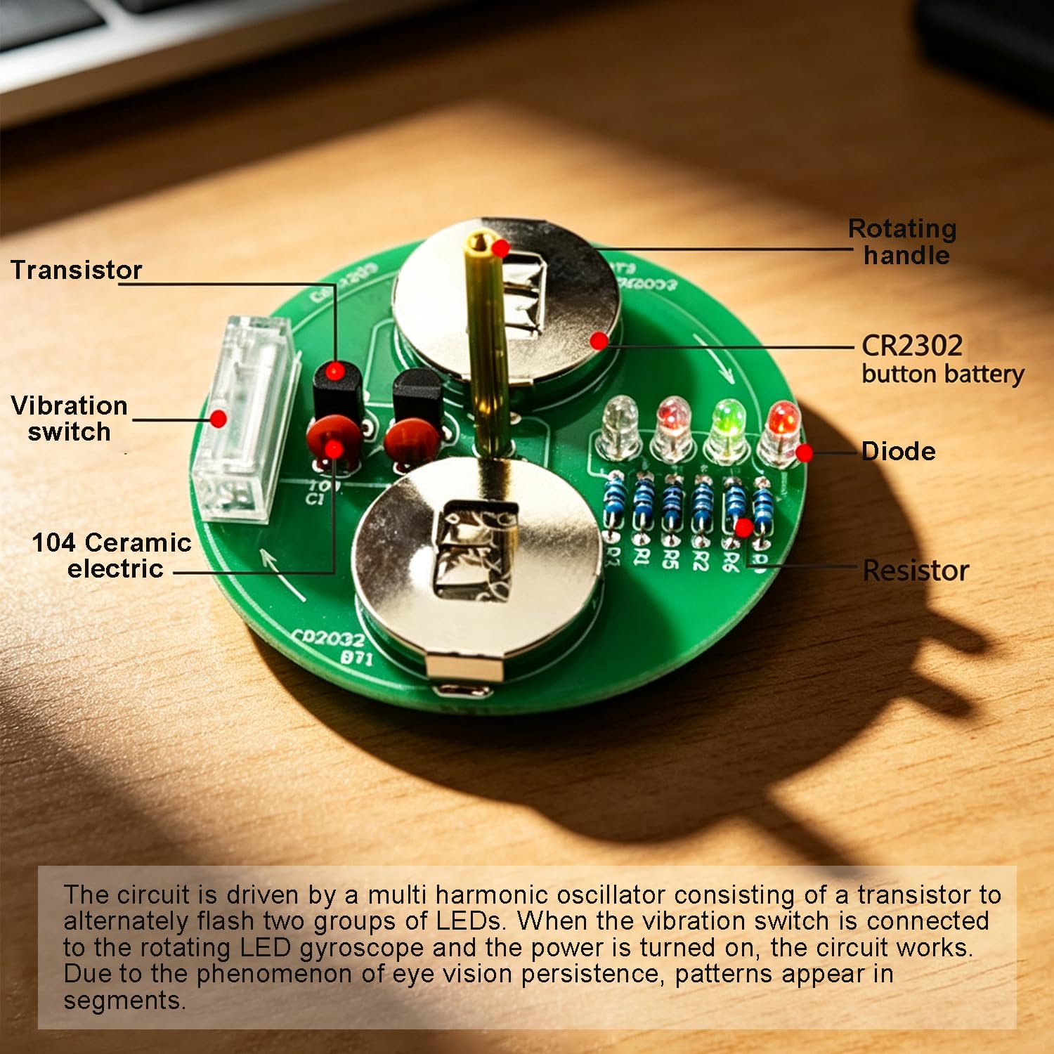 【LED Rotating Gyroscope DIY Kit】: The soldering components of this product are not SMDs, and it‘s easier to assemble, it‘s suitable for soldering beginners. It only has one LED pattern.