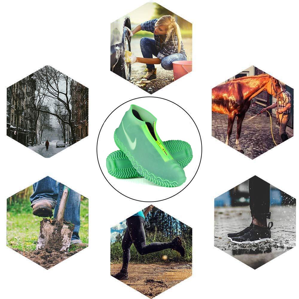ALL-ROUND WATERPROOF, REUSABLE : Stretchable silicone And very resistant to tearing, Waterproof zipper strip design helps you to put them on and off easily,it can avoid rain or water into the shoe cover from zipper,extending the lifetime of your footwear. Waterproof shoe cover no need to take hundreds of shoe & boot covers, simple to wear silicone waterproof cover just spend one minute.