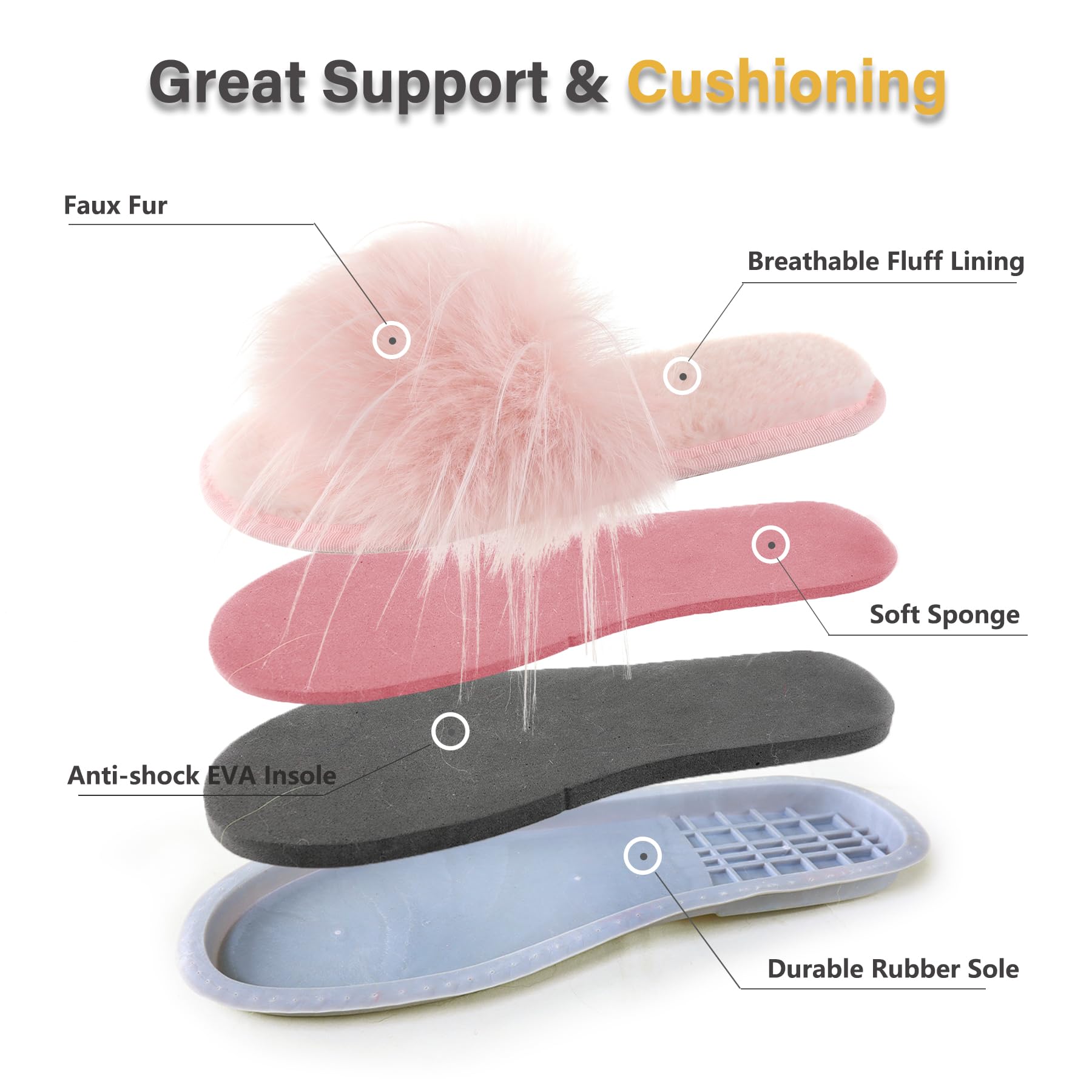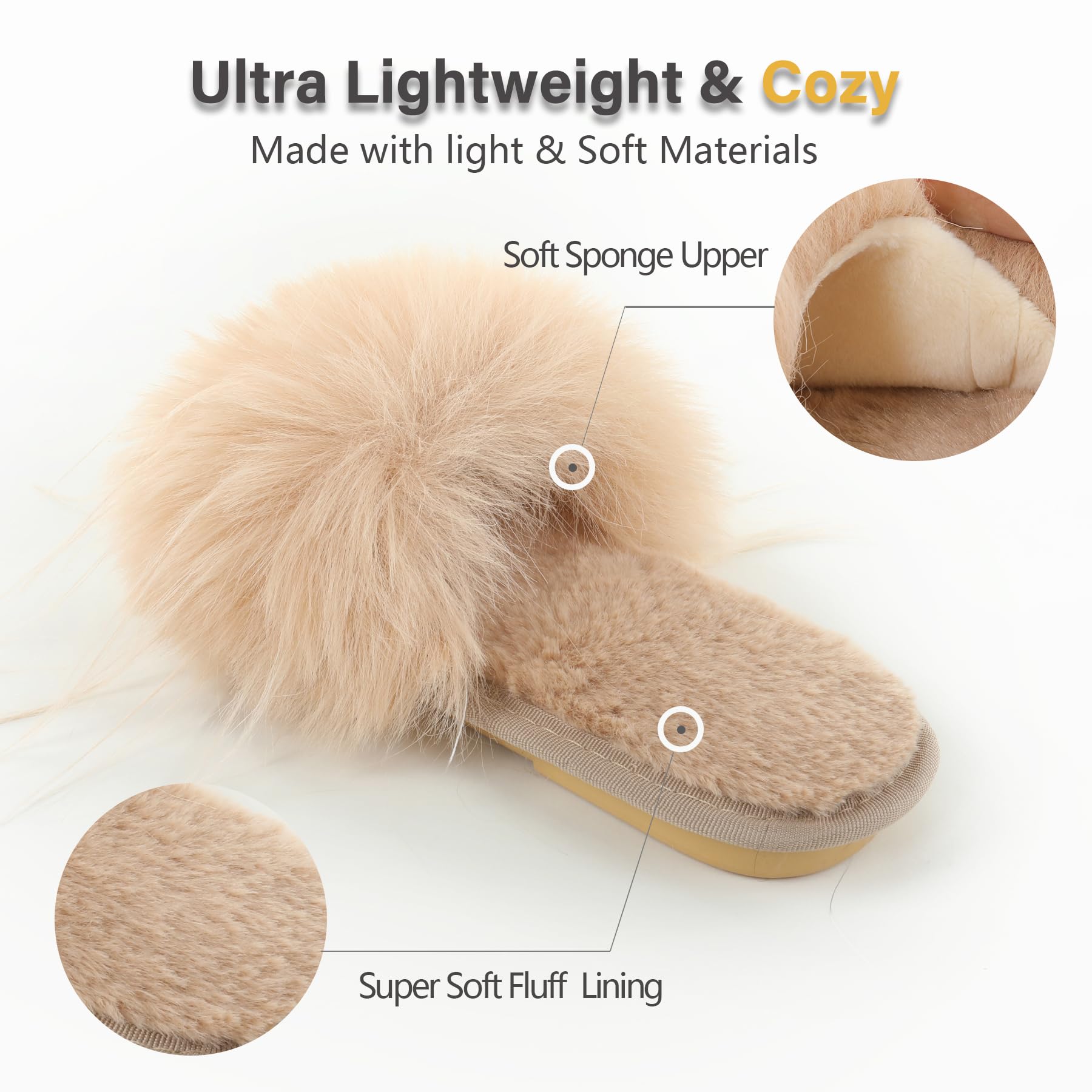 ☆ MATERIAL - Faux fur on upper( Slightly fur hair shedding is normal condition). The sole is covered with soft faux fur. When you receive this fuzzy slippers,you can blow it with a hair dryer, and the fur will become fluffy.
