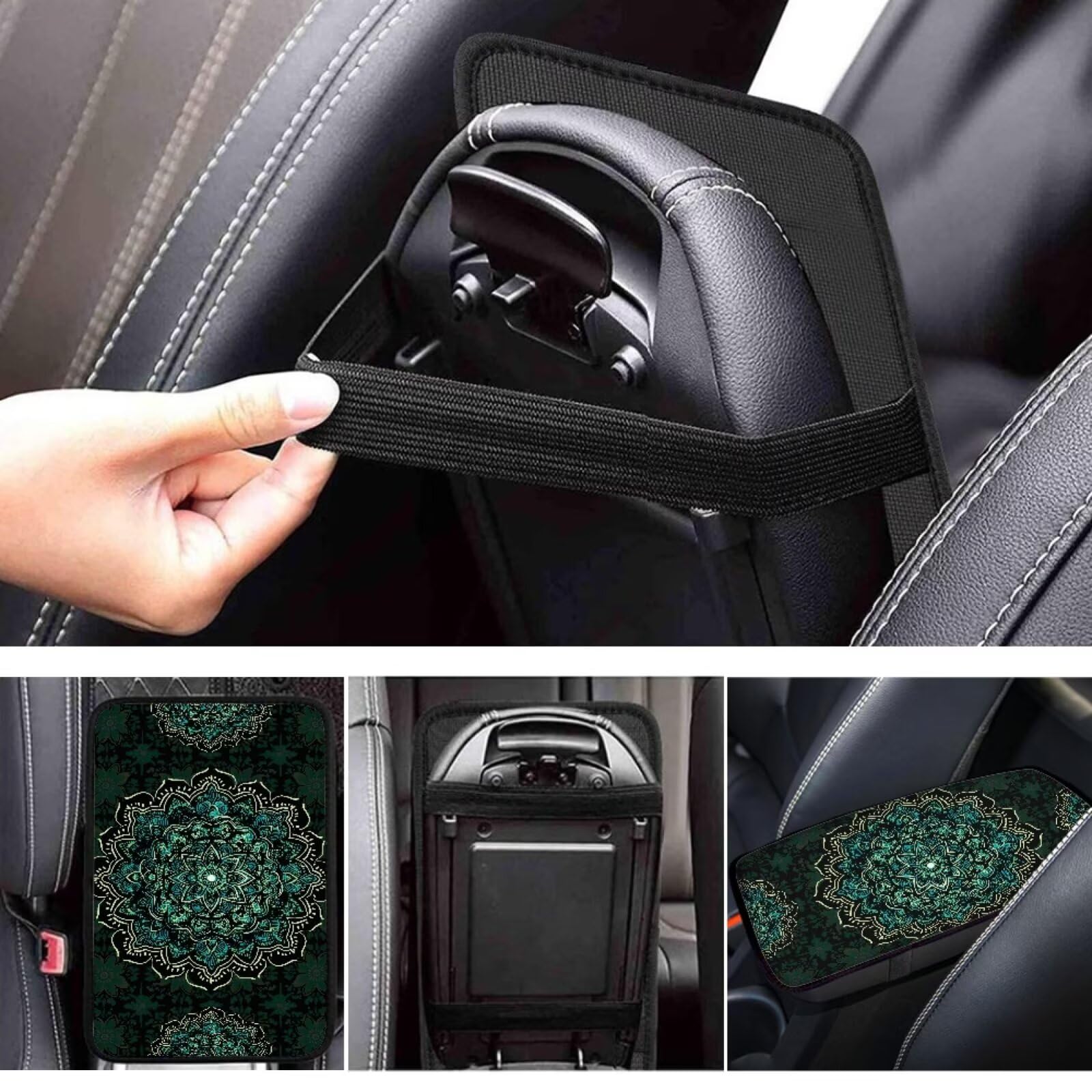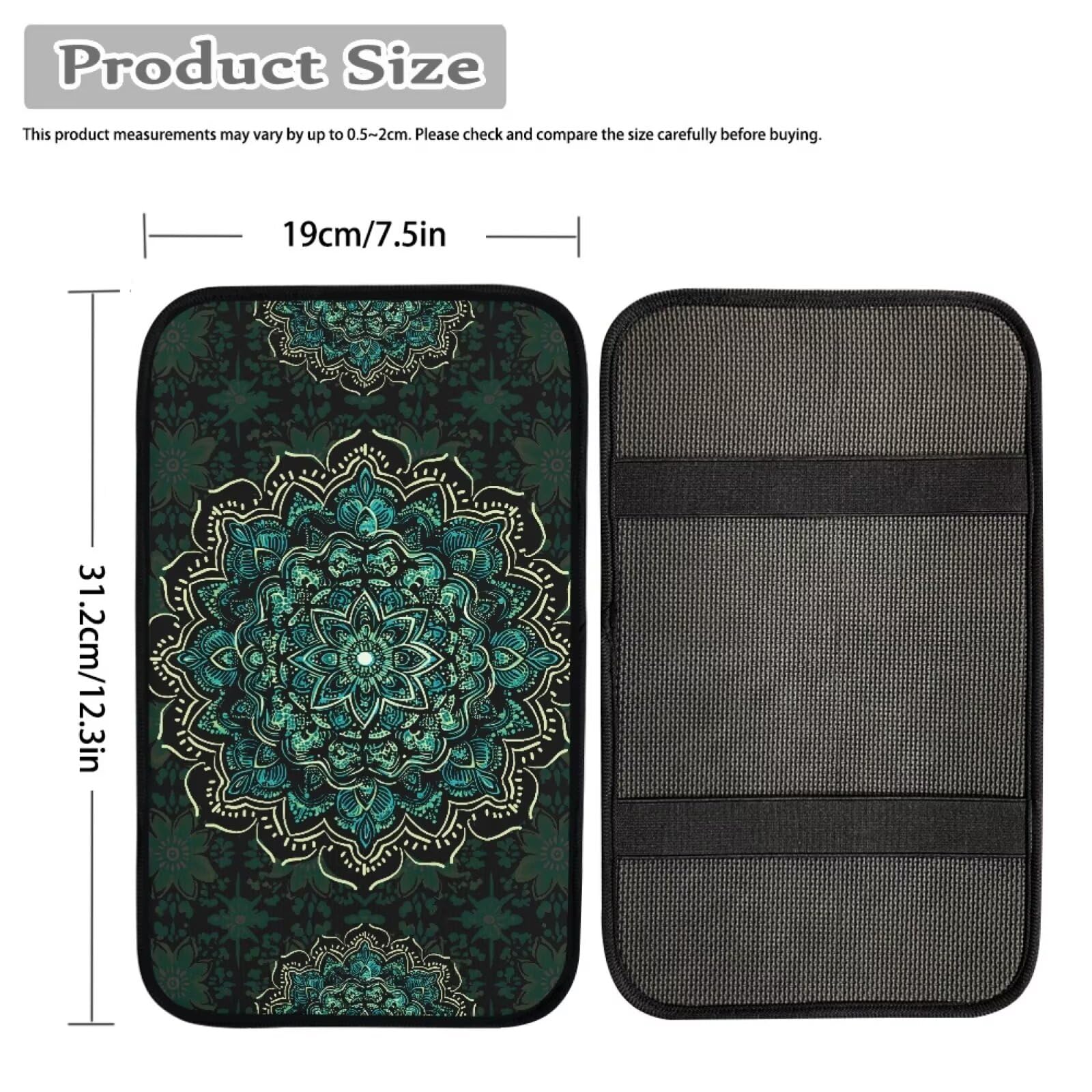 Our armrest pad is 12.6 inch long, 7.5 inch wide that matches most of the auto car center console armrest box, it covers whole top and make it looks different by stylish patterns
