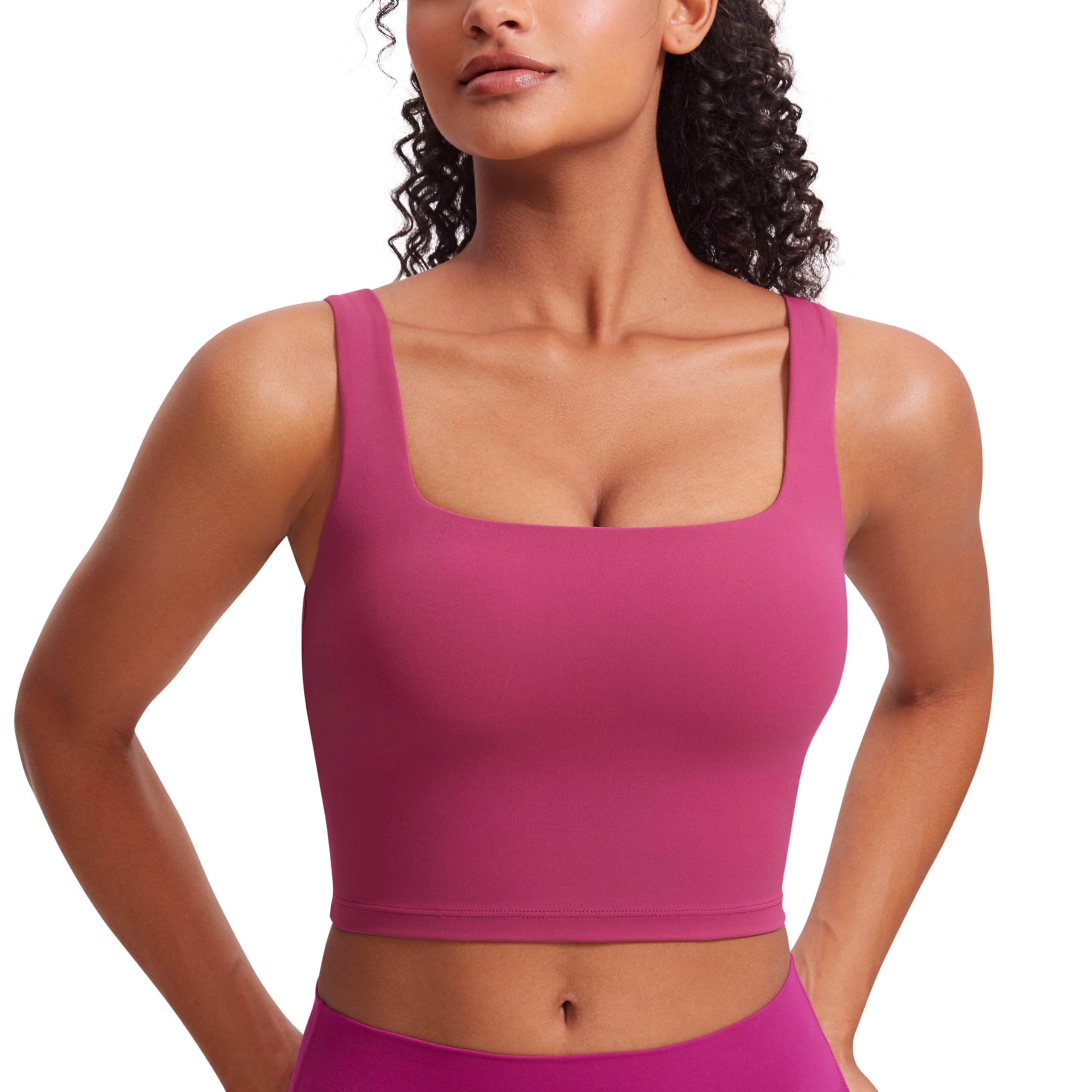 Cropped tank top that sits above the belly button, pairs well with high-waisted pants