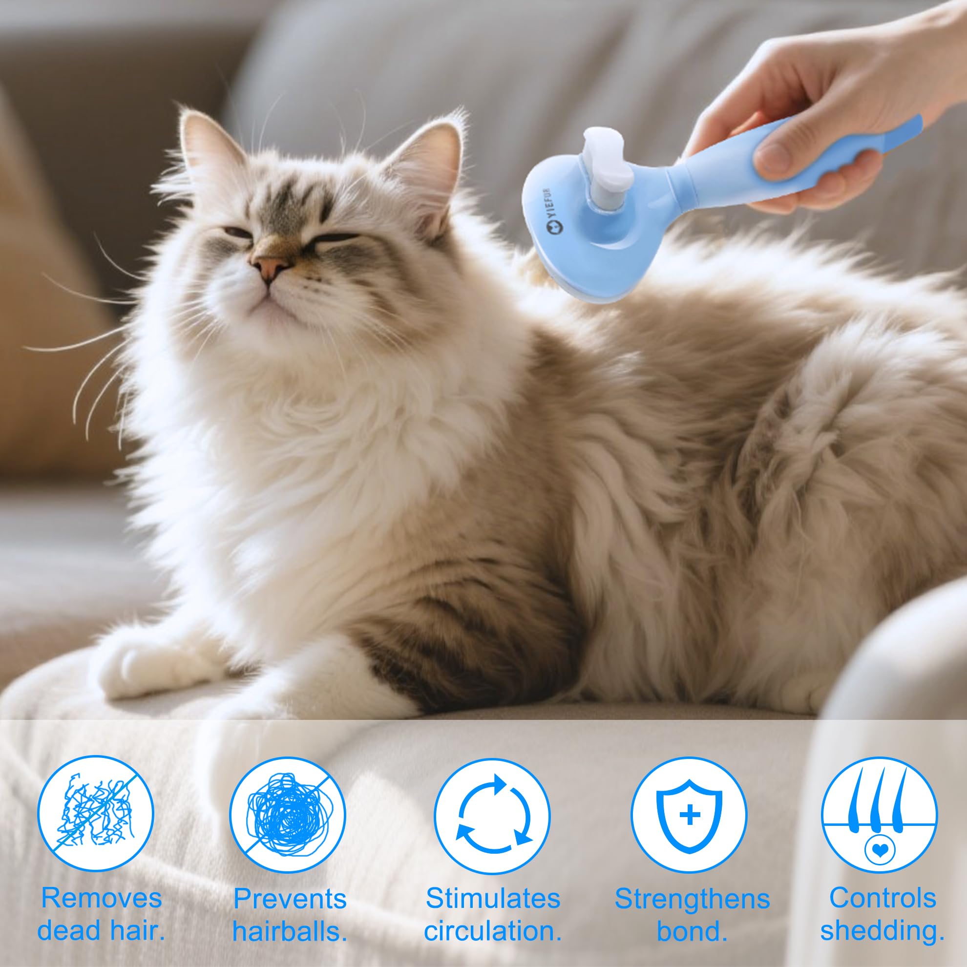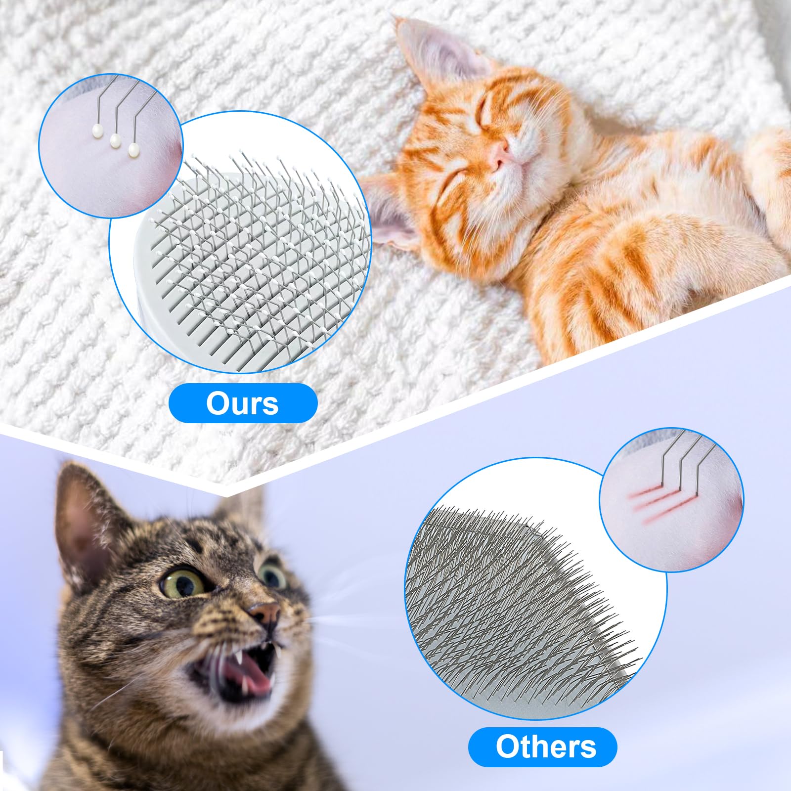 Premium Material:The cat grooming brush is made of resistant and durable material, free of toxins and chemicals, healthy and easy to use