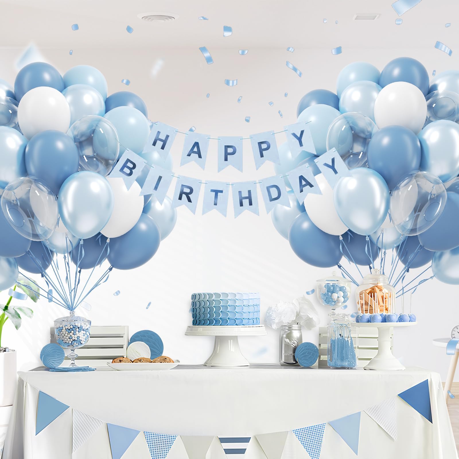 Ease of Assembly:The light blue balloons have ribbon, glue dots to help complete the party decorations more easily. First, inflate the balloons with pump, crossing each other to form some balloon clusters. Then, tie them together with ribbon. Finally, hang it on the party backdrop, use glue dots to attach balloons to fill any voids