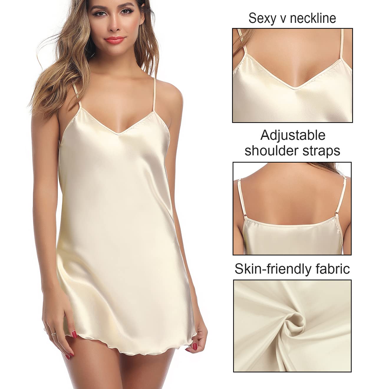 Versatile v neck nightwear satin negligee lingerie could wear as a full slip for women under dress short, perfect layer this satin camisole nightgown with robes, cardigans, and jackets
