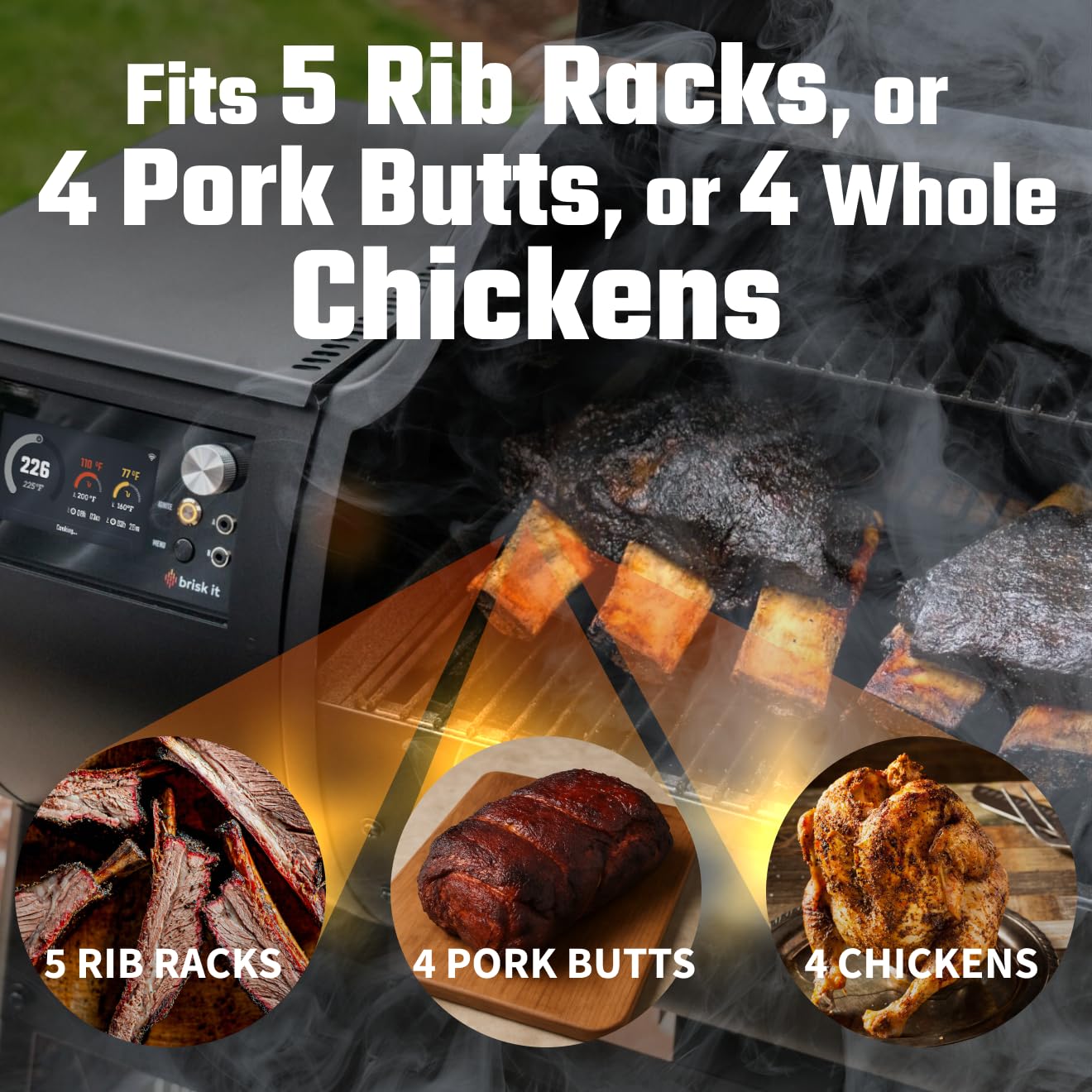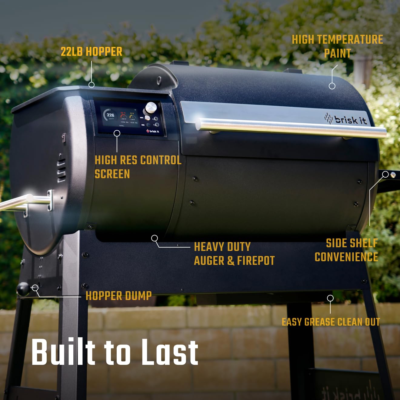 Precise Temperature Control – Engineered with an industrial-grade adaptive PID algorithm, Brisk’s high-resolution controller delivers unwavering temperature accuracy between 165°F–500°F. Whether you’re smoking low and slow or searing hot and fast, expect exceptional grilling and smoking results every time