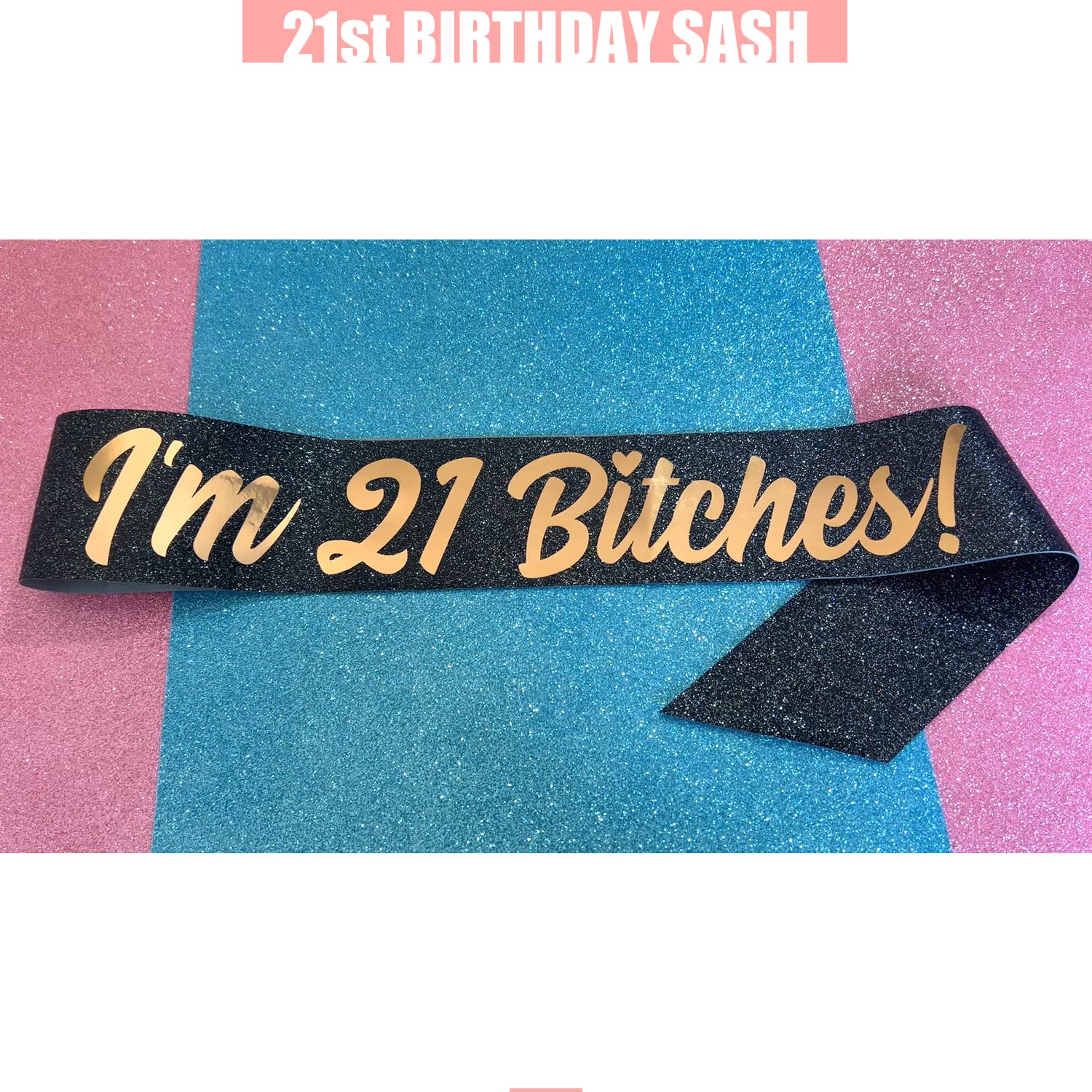 Elegant and Classy I'm 21! Sash for 21st Birthday Decorations : made of high quality sparkling Black Glitter fabric with rose gold compressed foil letters that will compliment any outfit in any color