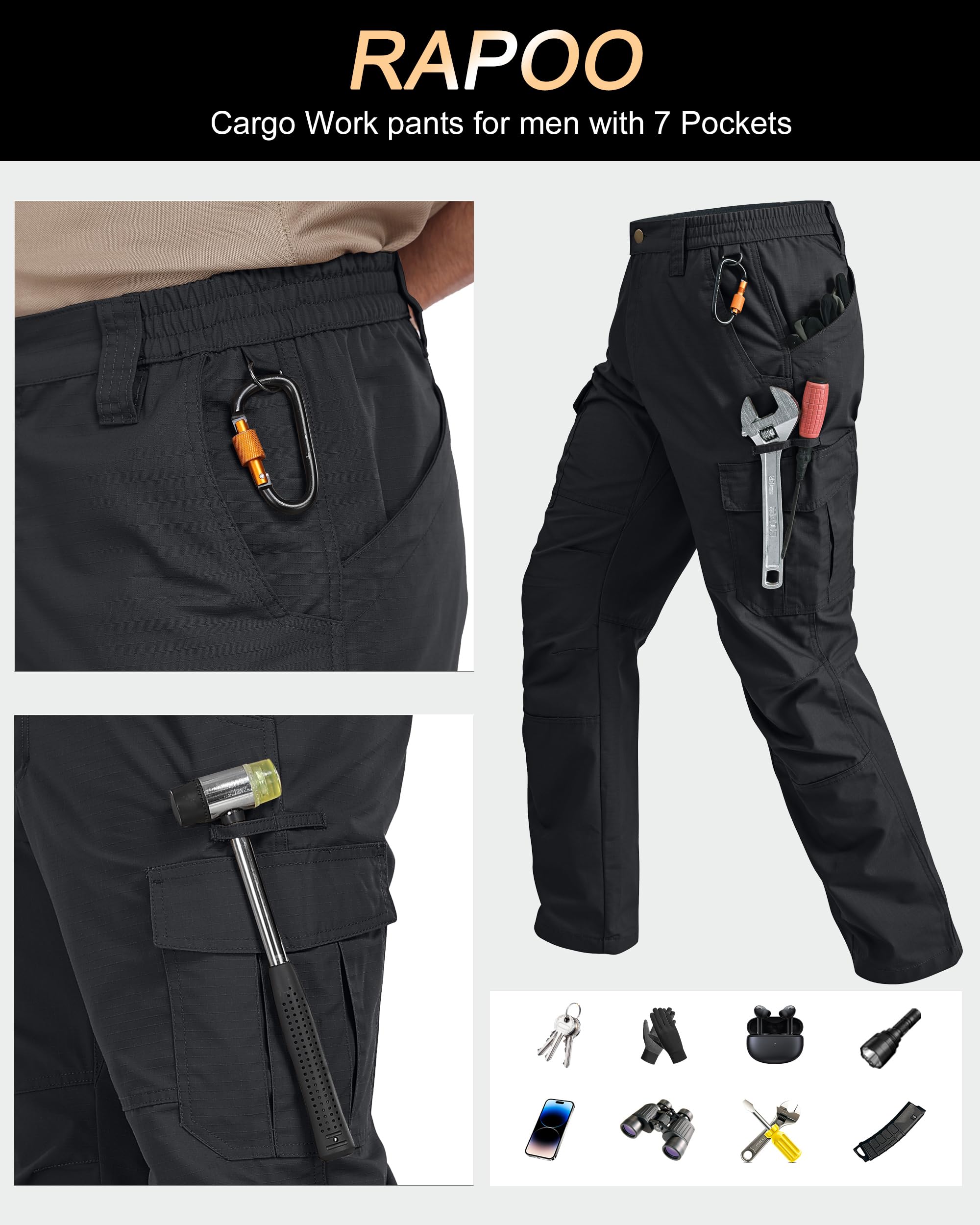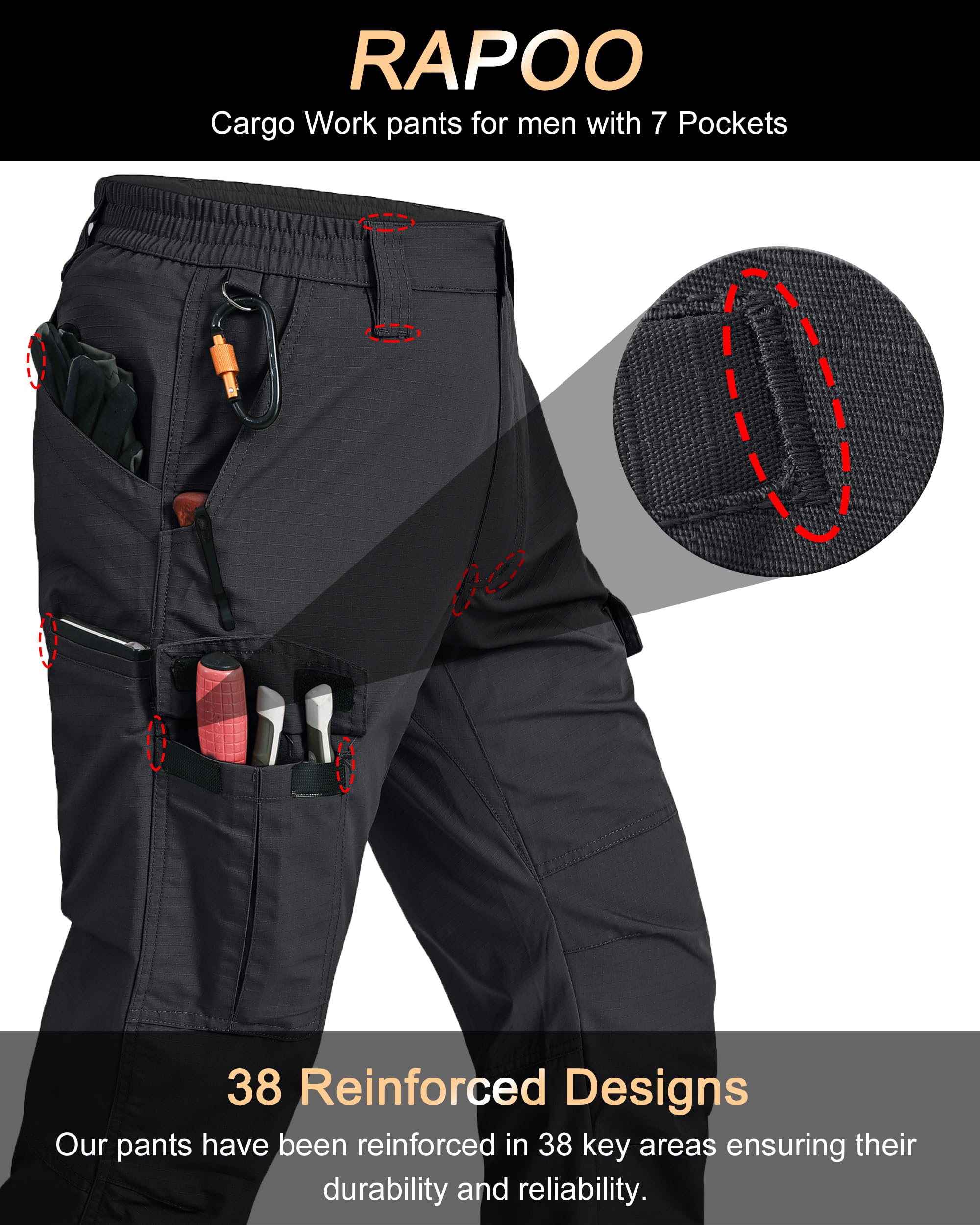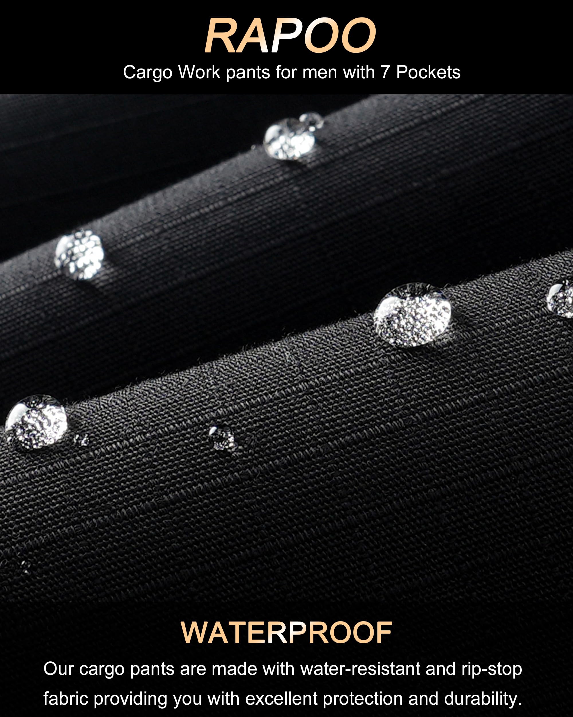 【Ripstop Fabric】--The Rapoo work pants are crafted from ripstop fabric that has undergone an excellent water-repellent treatment, keeping you dry all day long. They are designed to be breathable, scratch-resistant, durable, water-resistant, comfortable, flexible, and resistant to wrinkles and fading.