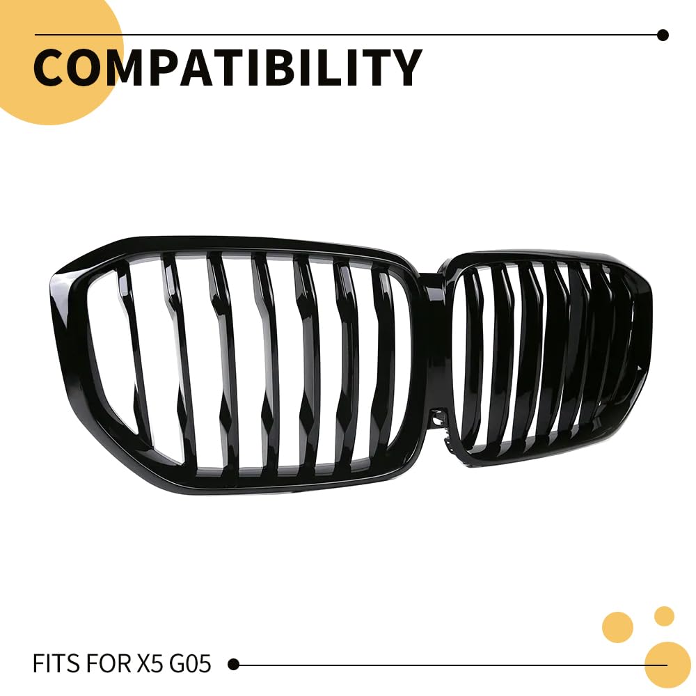 Compatibility: Front grille fits for BMW (2019-2023) X5 G05 40iX 50iX 30dX models with or without front camera.