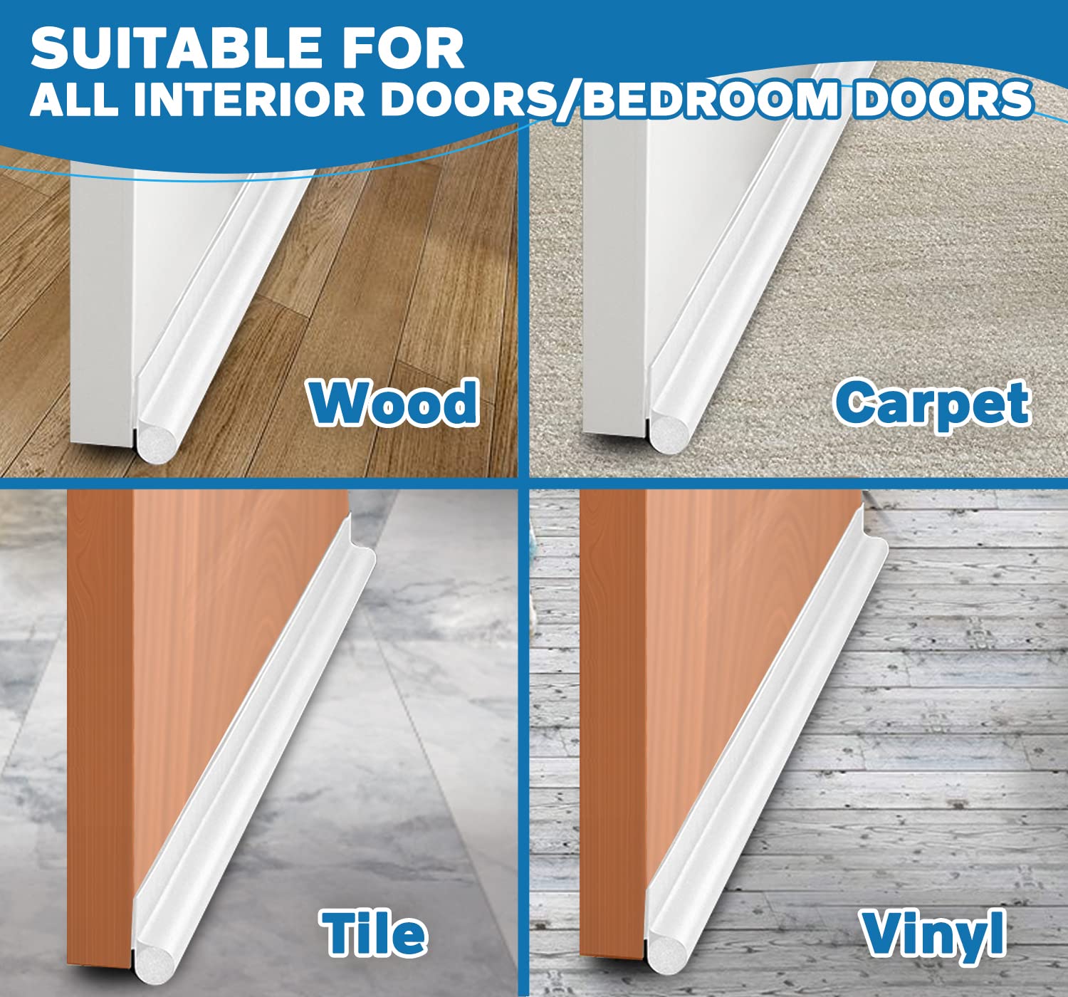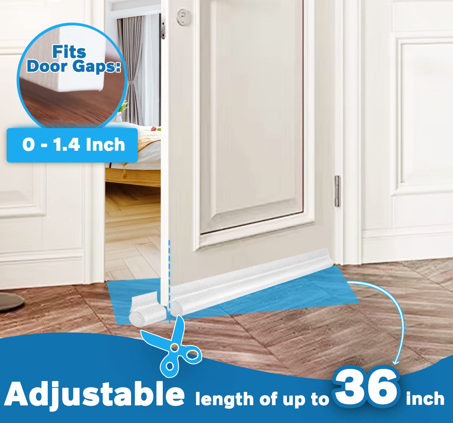 [Custom Fit & Color Options for Most Doors] Fits doors up to 36 inches wide and seals gaps up to 1.4 inches high. Available in white, gray, and brown to suit different interior styles. Easily trim to fit your door—works as both a door sweep and under-door seal