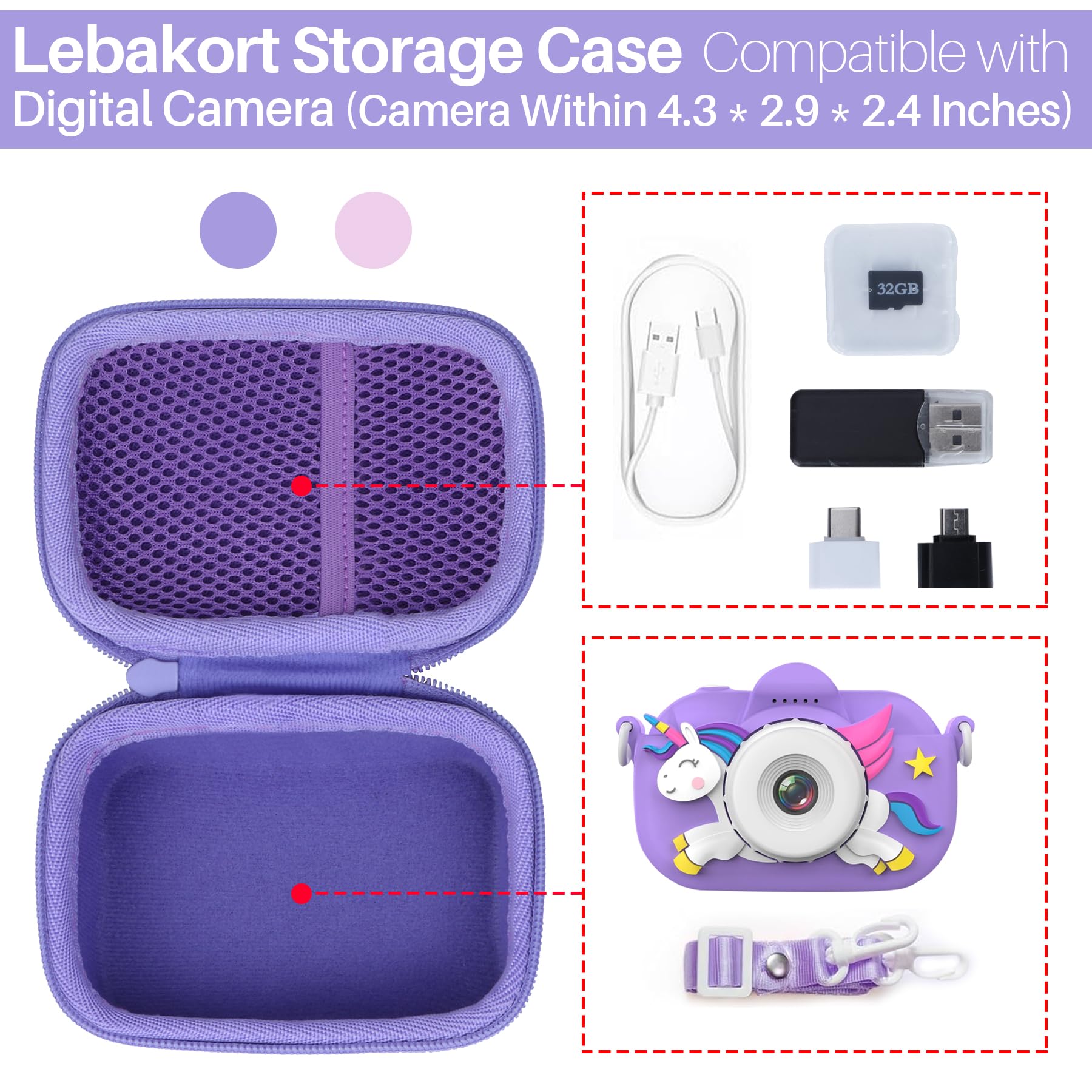 Lebakort storage case compatible with goopow / Seckton / masterbee / Cimizi / Hangrui / Desuccus / OUTUVAS / Kikapabi / Dwfit / Agoigo / GKTZ / Dylanto / YEEHAO / CIMELR / Rindol / LETSHAHA / Zeacool kids camera toys children digital video camcorder camera kids camera toddler camera girls boys 3-12 year old girl boy kid camera toys 1080p HD kids digital video cameras toddler child camera