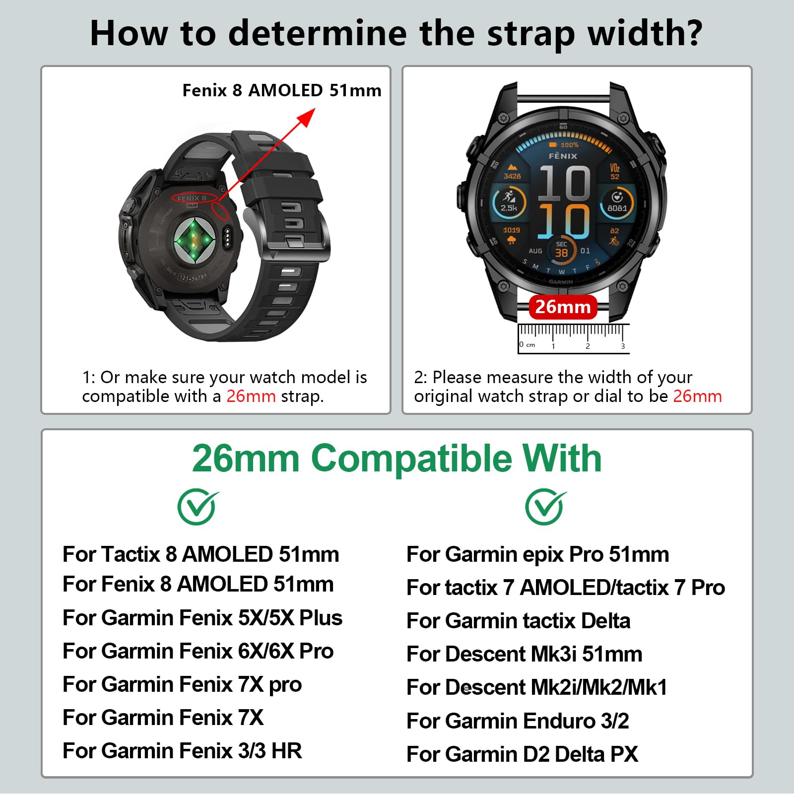 Easy to install: 26mm sport watchbands compatible with fenix 8 51mm can be quickly installed and removed without additional tools, safe and firm, not easy to fall