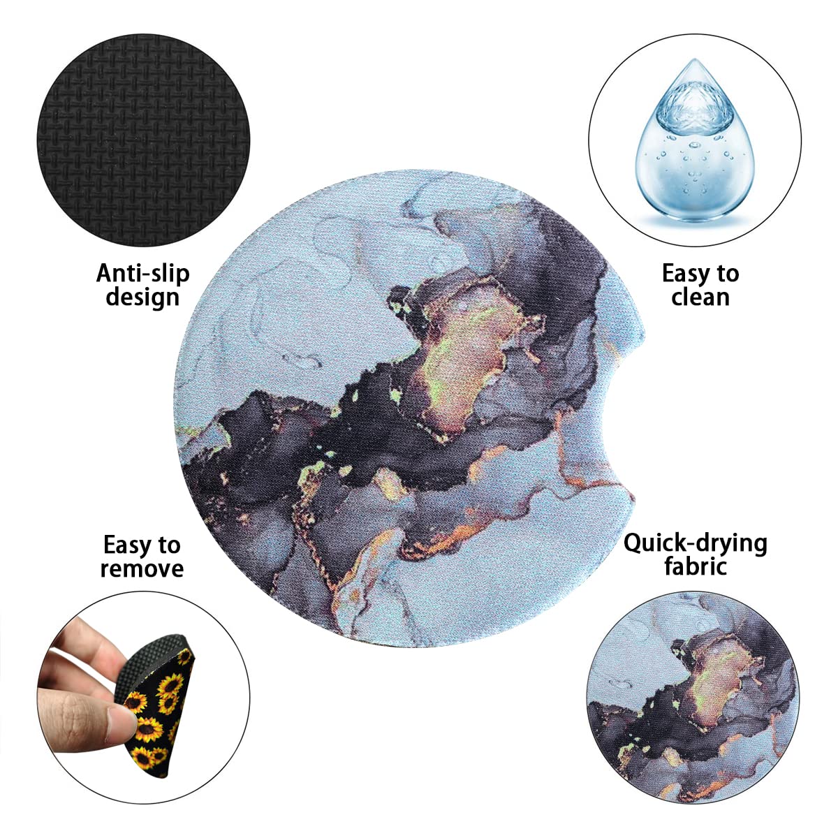 Easy to Clean: The unique finger allow you to lift car coasters out with ease when it's time to clean. Easy to clean with soap and water, the car cupholder coasters will look spic and span in just a matter of minutes. You don't need to worry about them fading.