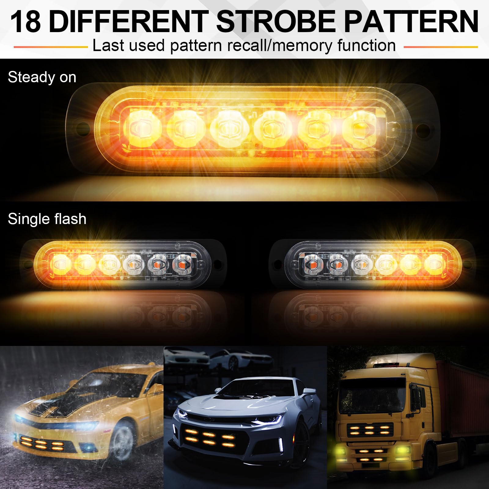 Various Applications: the LED strobe lights are suitable for most vehicles with 12-24V power source, such as truck, SUV, pickup, off road vehicle, ATV, engineering vehicles, emergency vehicles, firefighter vehicles, construction vehicle and more