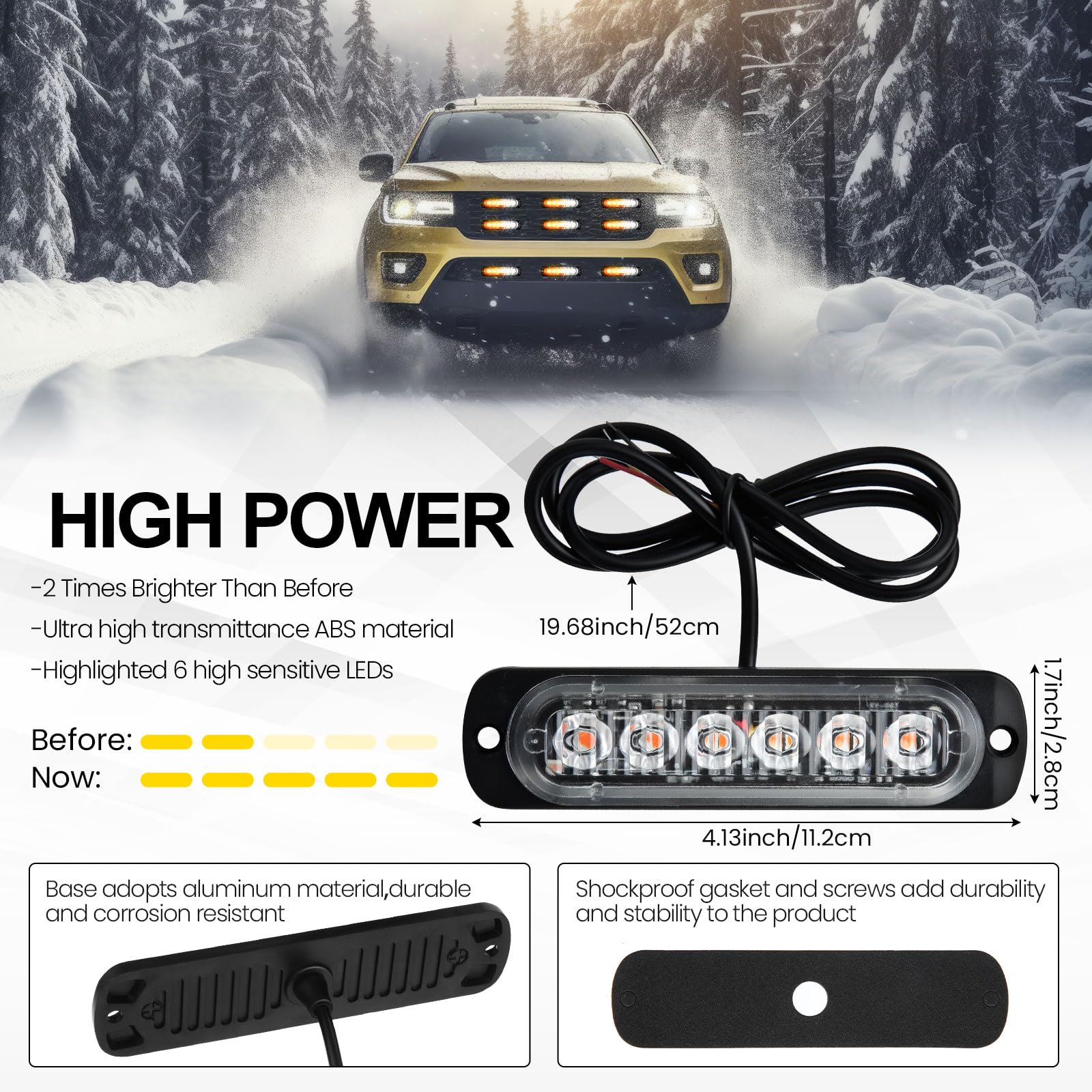 High Bright LED Light: the bright LED strobe lights are designed with 6 pieces of high intensity LED chips, can improve the overall visibility, which are much brighter than the standard LED strobe lights, can ensure your driving safe during the day and night