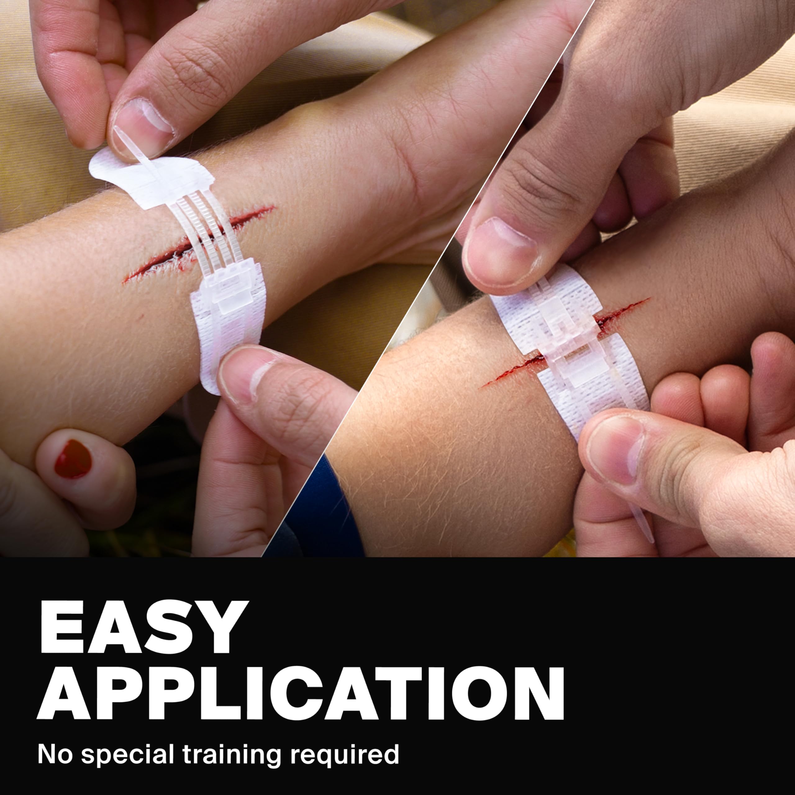IDEAL FOR SENSITIVE USERS — Designed with children and the elderly in mind, our adhesive-based wound closures do not penetrate the skin, making them less intimidating, pain-free, and proven to reduce scarring compared to traditional stitches.