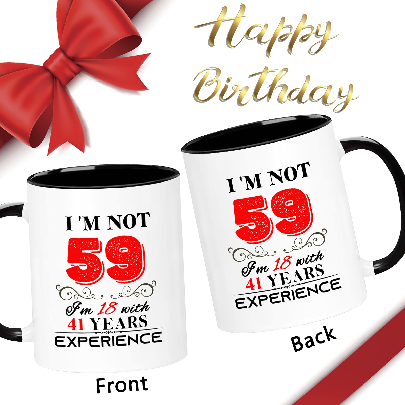 【Birthday Gift】: This funny "I'm not 59, I'm 18 with 41 years experience" Mug is the perfect birthday gift for a 59 year women men! Give it to your mom, dad, papa, mama, brother, sister, husband, wife, aunt, uncle, cousin, son, daughter, boyfriend, girlfriend, boss, coworkers, bestie, granddaughter, or your best friend for her he birthday.