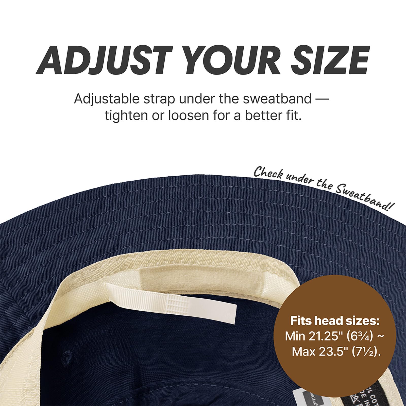 [ADJUSTABLE COMFORT] – Hidden inside the sweatband is a clever hook-and-loop strap that lets you tighten or loosen the fit. Whether you're heading to the beach or the city, enjoy a hat that moves with you and never feels off-size.