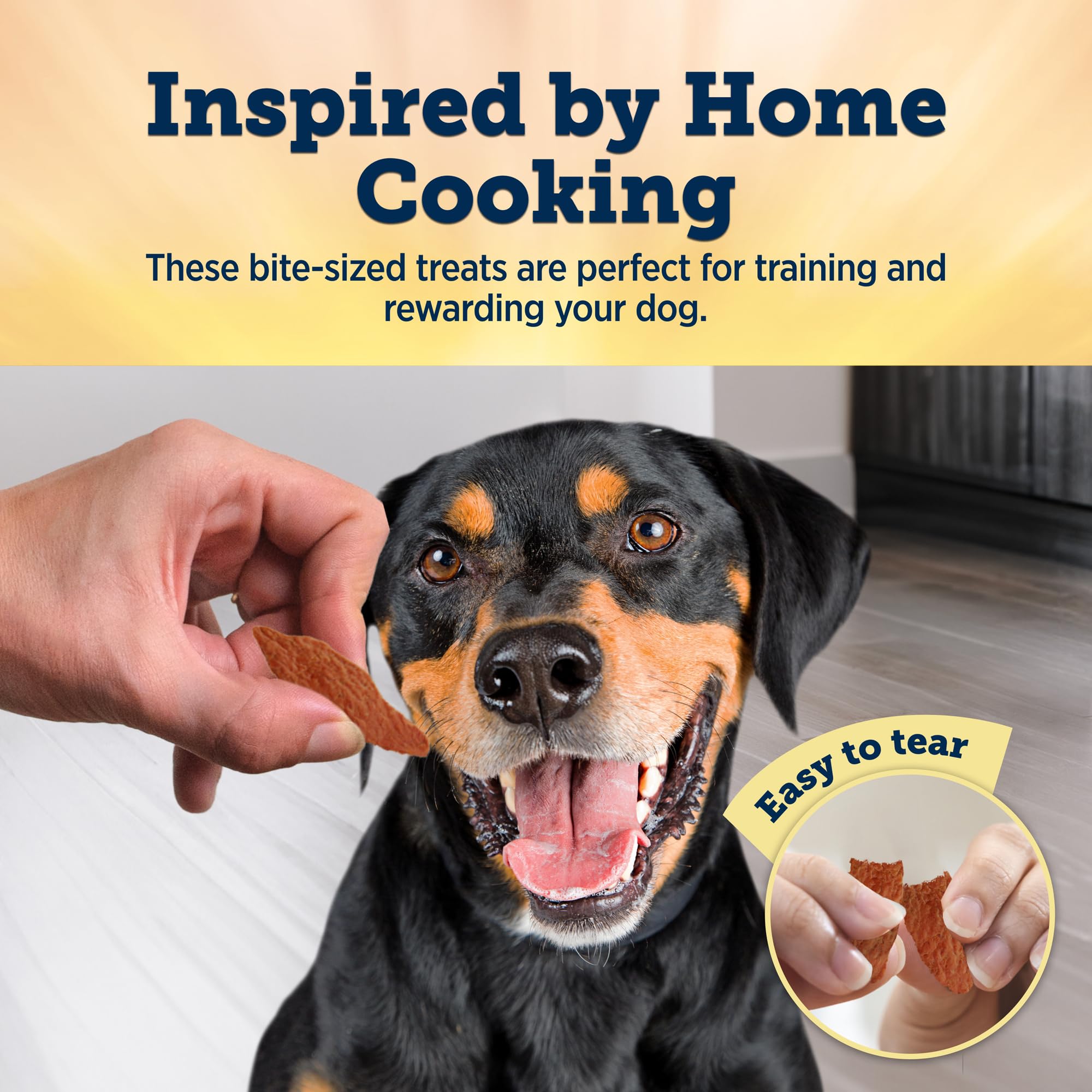 TAIL-WAGGING TEXTURE: These tender jerky treats are oven-dried and easy to tear, making them perfect for every buddy