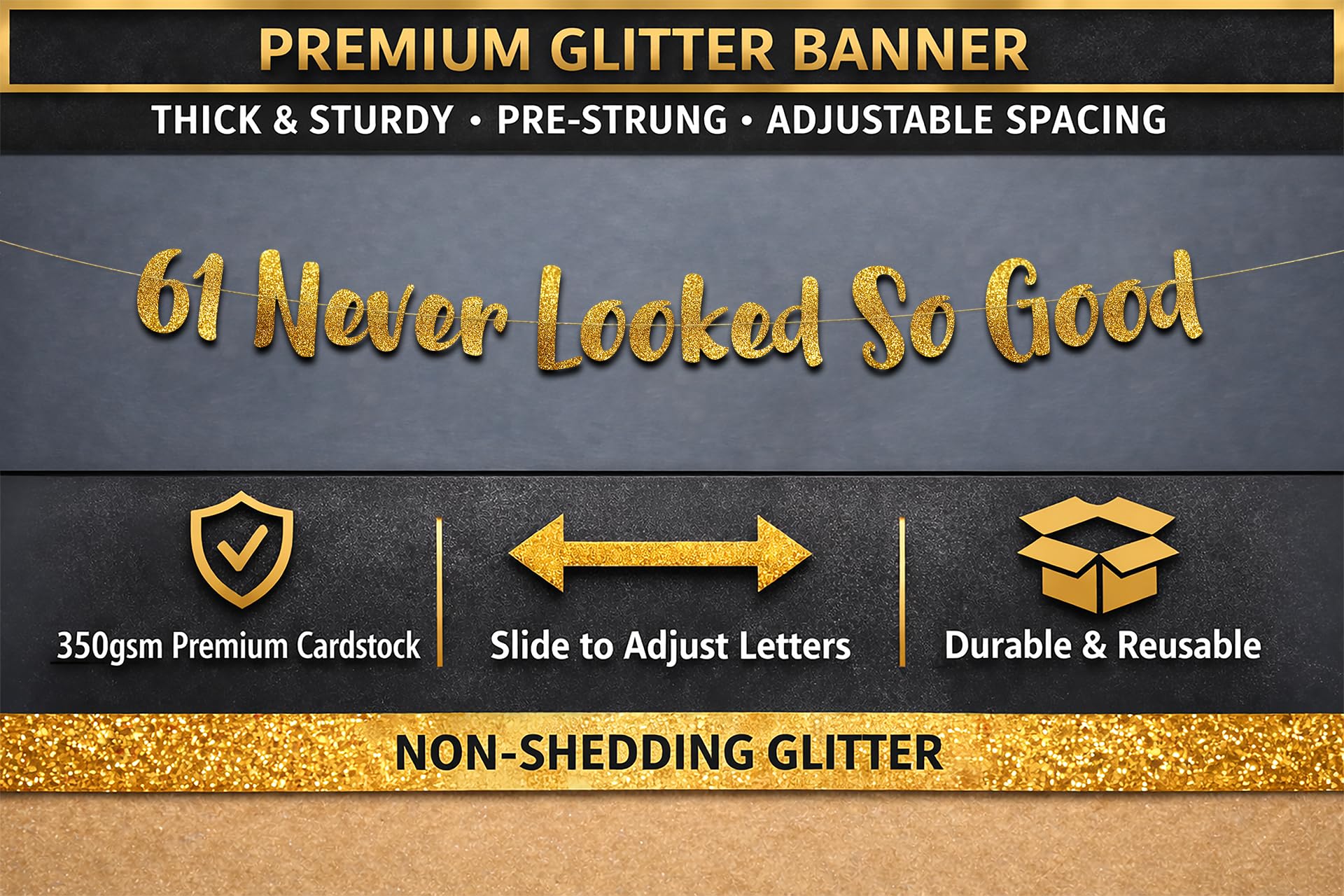 PERFECT FOR: A thoughtful 61st birthday gift idea for him or her. Hang as a photo backdrop, wall sign, or table centerpiece at home parties, office celebrations, backyard barbecues, surprise parties, and event spaces. Pairs with matching Sterling James Co. sashes, party packs, and balloons. Designed in the USA by a small family-run business.