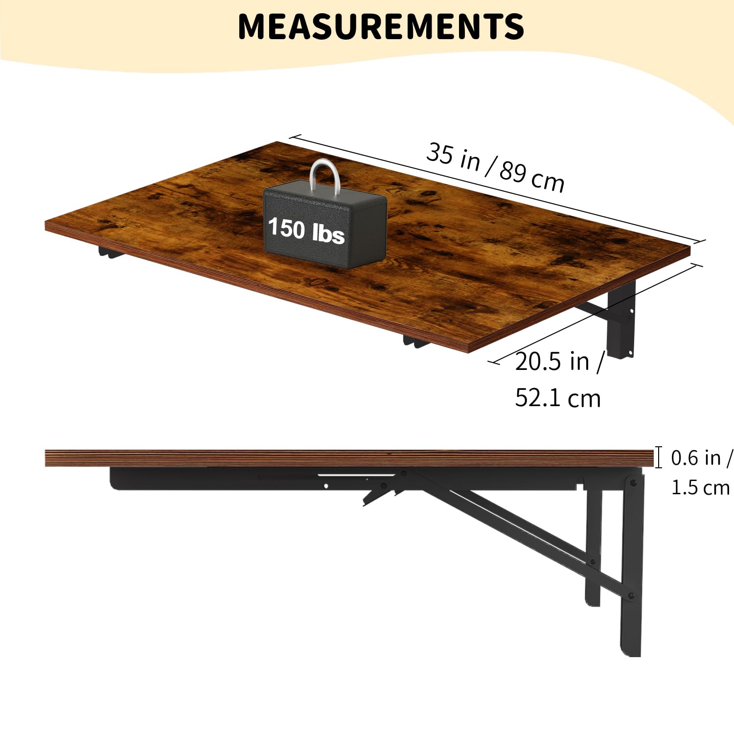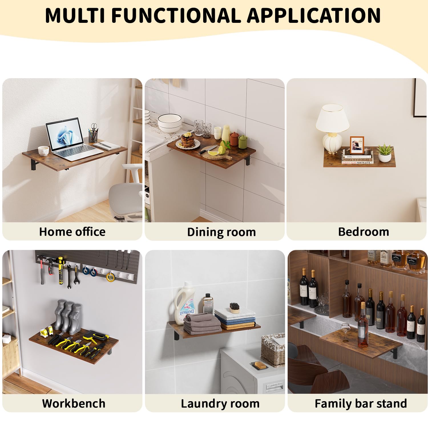 Ideal for Home Decor: Wall folding table is not only functional but also add the elegance to any rooms. with the lines and minimalist design makes it versatile that can be used in a variety of occasions. whether you need extra workspace in your kitchen, a convenient spot to fold clothes in your laundry room, or a compact desk in your office, GOYLSER wall mount desk fit all your needs.