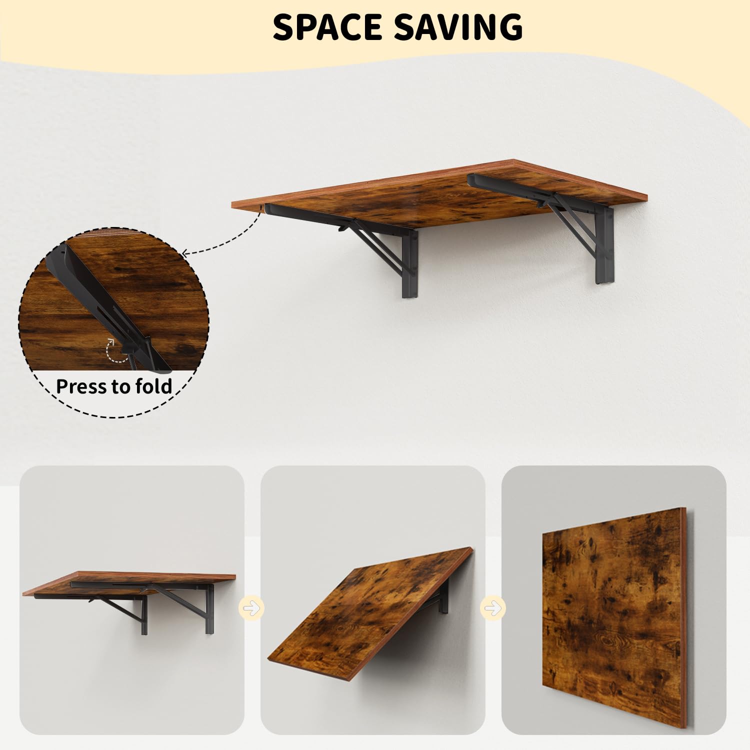 Fold Down for Space Saving: Table wall mounted providing small space for folding laundry, preparing meals, or completing tasks. when not in use, simply fold the table down against the wall to save valuable floor space.